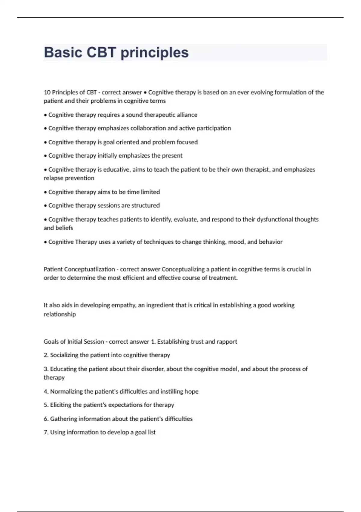 1 Exam (elaborations) Treatment for offenders CBT correctly answered rated A+ 2023 verified to pass 2 Exam (elaborations) Intro to CBT correctly answered rated A+ 2023 3 Exam (elaborations) Describe the main components of cognitive behavioral therapy fully solved 2023 4 Exam (elaborations) Counselling Theories - CBT, Cognitive Behavioural Therap