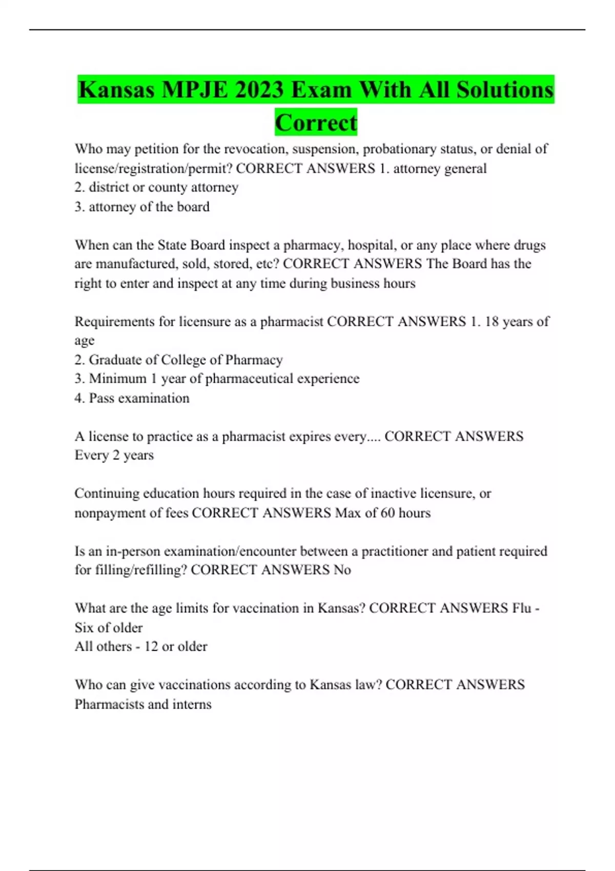 Kansas MPJE 2023 Exam With All Solutions Correct Kansas MPJE 2023 Test With Correct Solutions Kansas MPJE Exam Questions And Complete Solutions KS MPJE Review Test With Complete Solutions