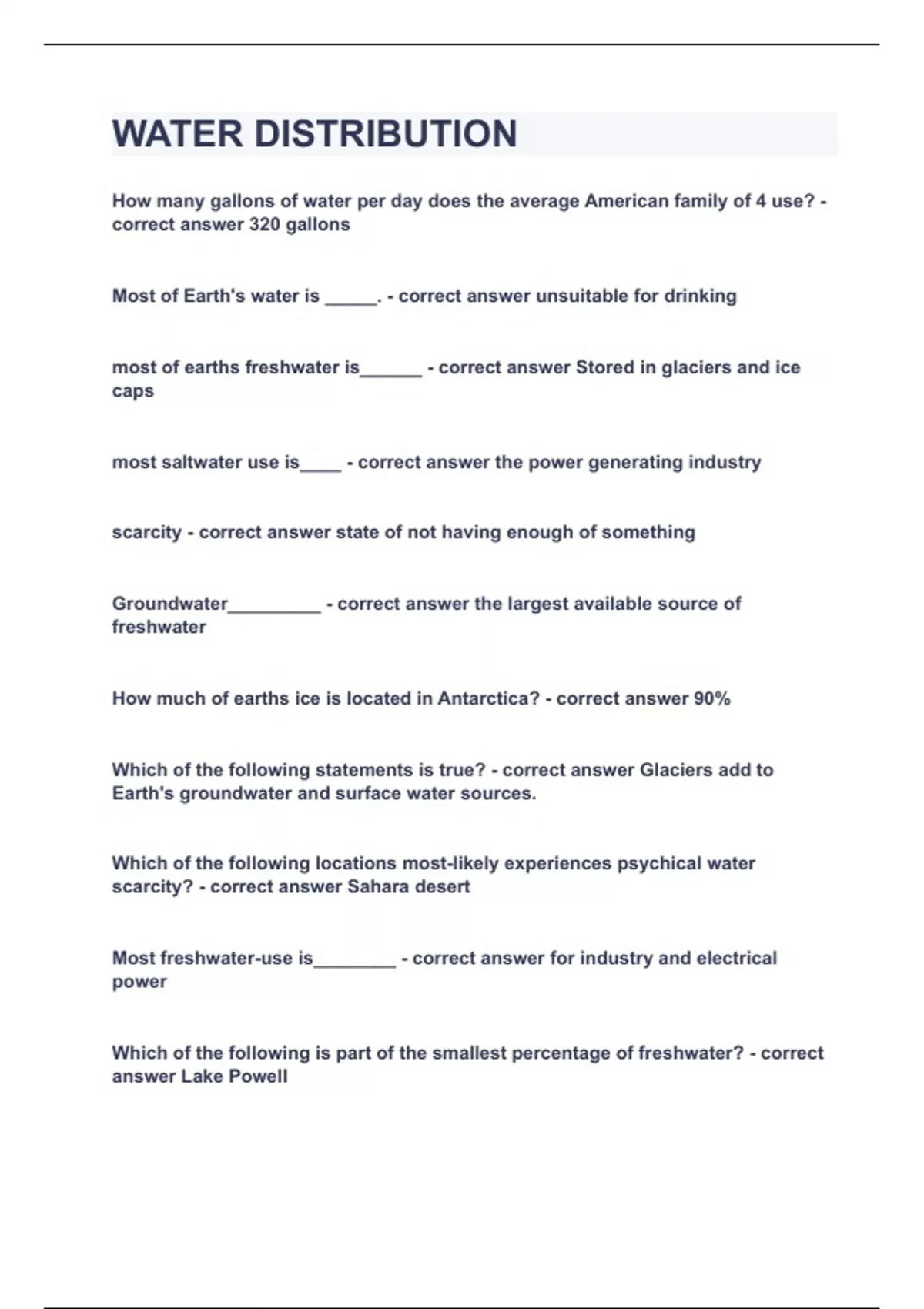 WATER DISTRIBUTION|GRADED A|GUARANTEED SUCCESS