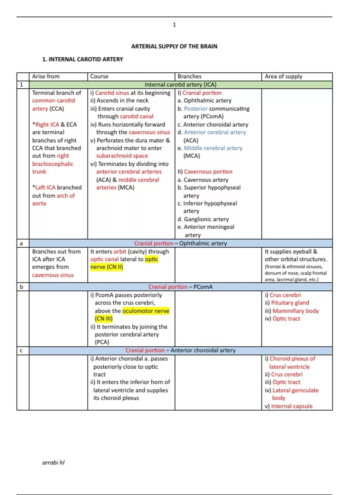 In Nervous System block, one of the most important thing to remember is the blood supply to central nervous system and the areas that it supply. Because the blockage of the blood supply could lead to a lesion or damage towards the areas of the cerebral cortex. Therefore, it is important to remember and understand these 2 topics.