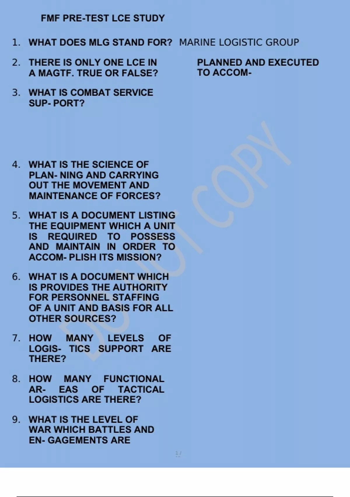 FMF Test – Questions & Correct Solutions