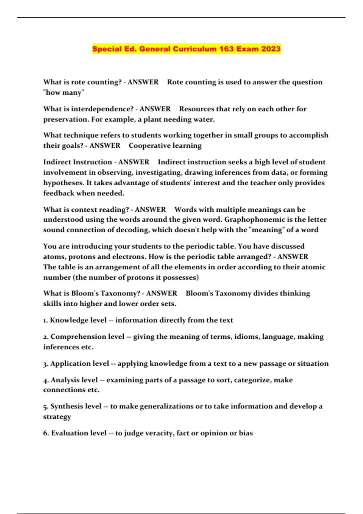 Special Ed. General Curriculum 163 Exam 2023