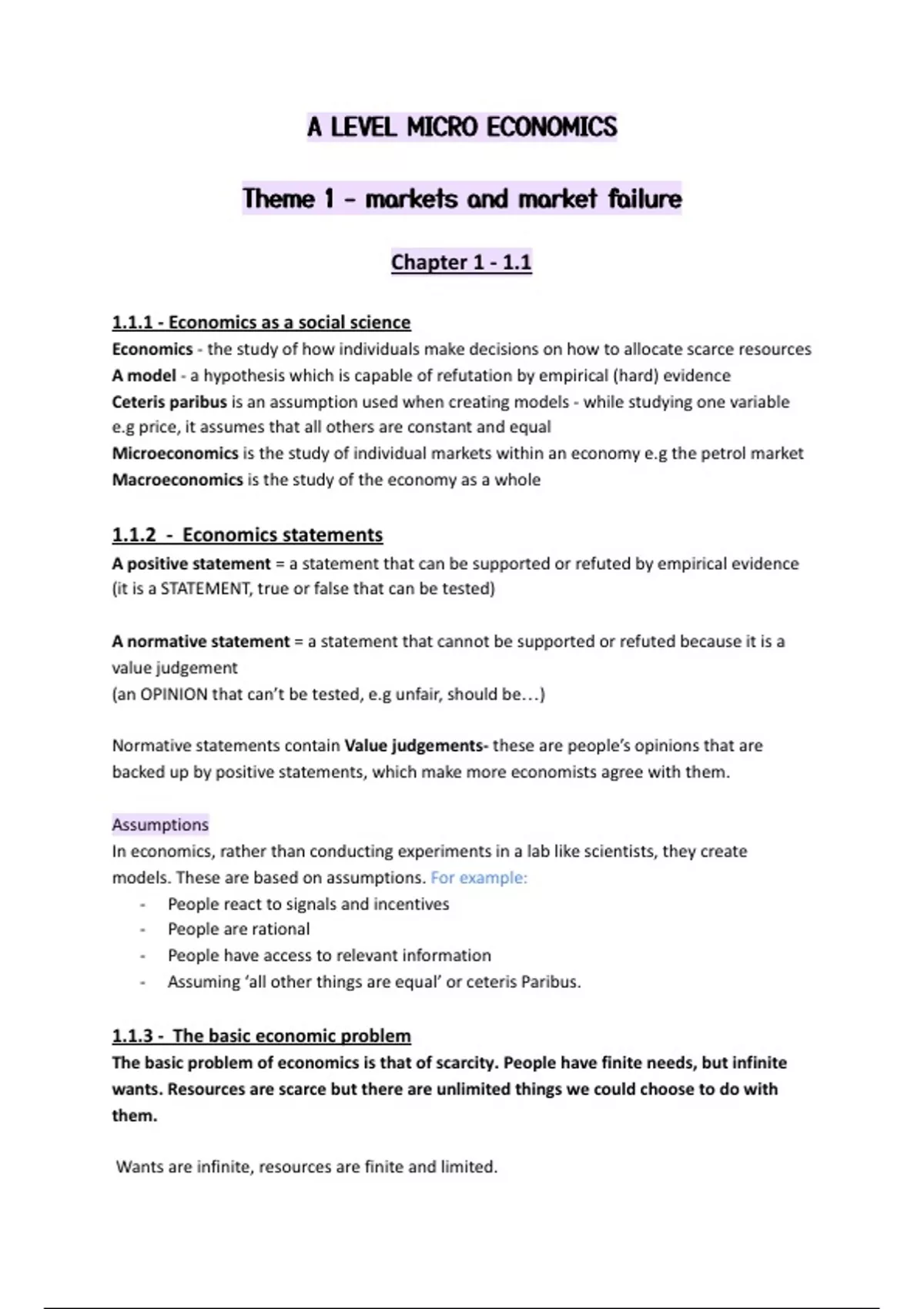 Summary Unit 1 - Introduction to markets and market failure details notes - everything you need to know