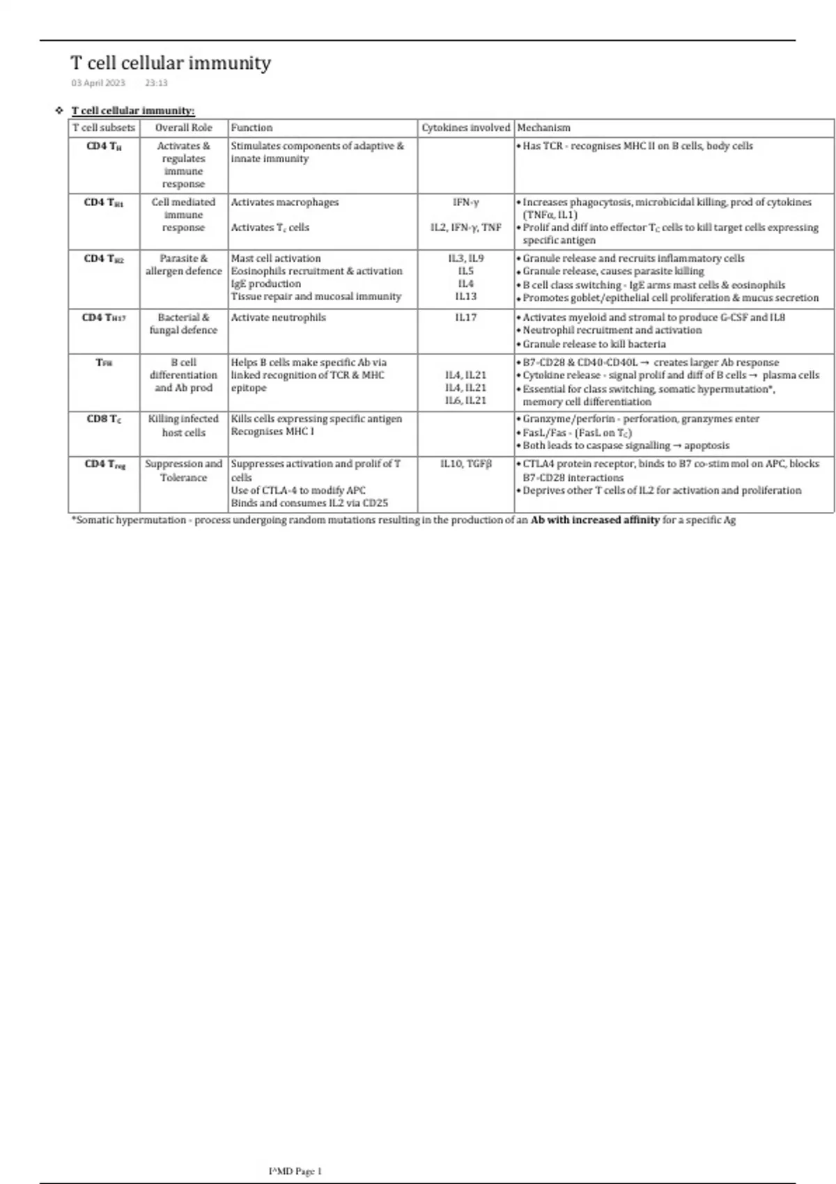 Summary I&D T cell - cellular immunity