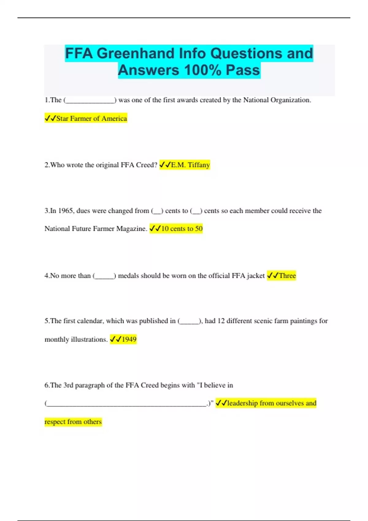 FFA Greenhand Bundled Exams Questions and Answers Latest Versions 100% Correct