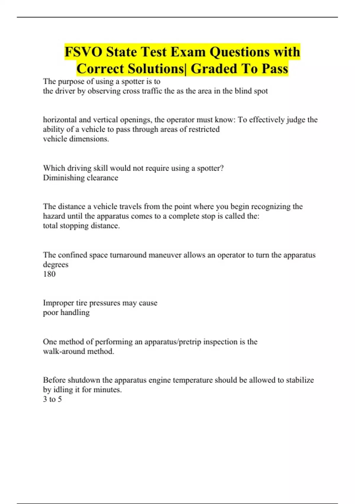 FSVO State Test Exam Questions with Correct Solutions| Test Bundle