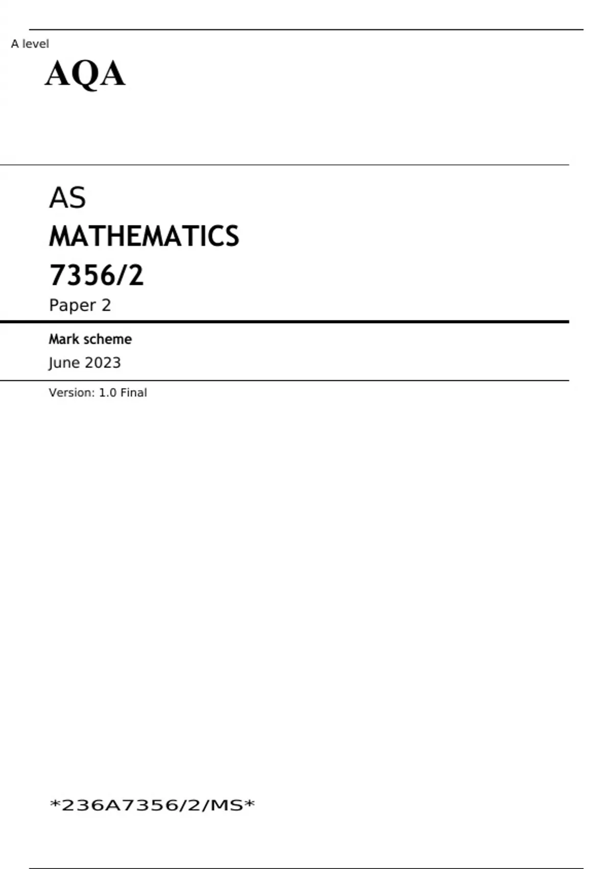 AQA AS MATHEMATICS PAPER 1 and 2 JUNE 2023 MARK SCHEMES