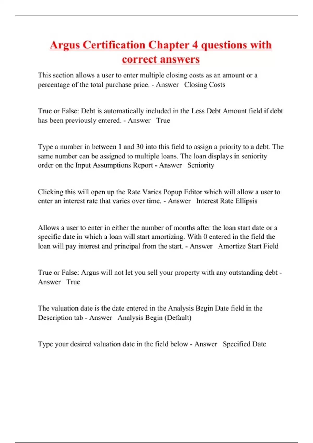 Argus Certification Review questions with correct answers