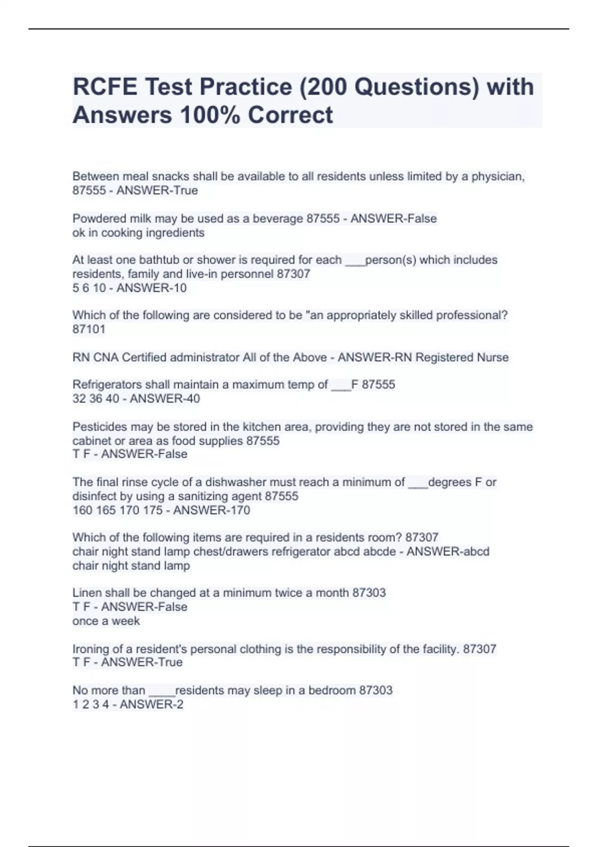 RCFE Exam BUNDLE| Questions and Answers 100% Correct