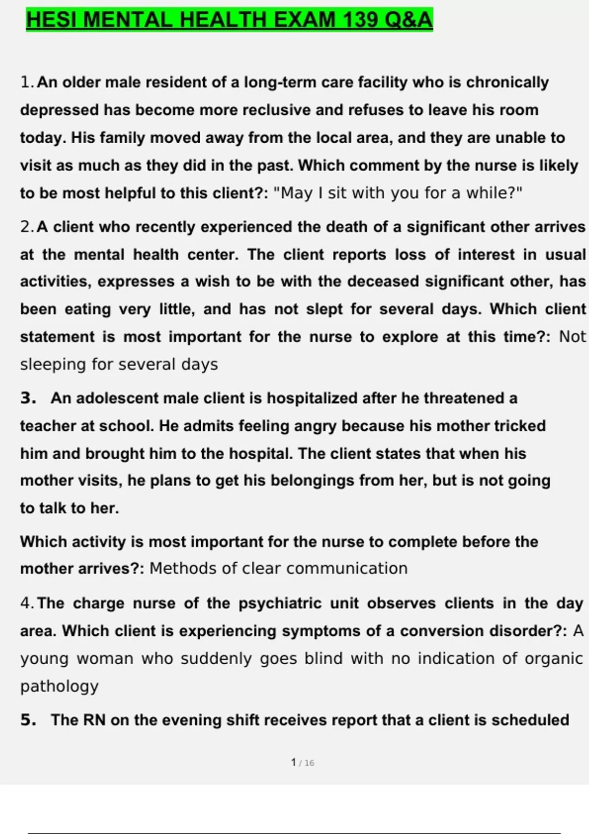 HESI MENTAL HEALTH EXAM BUNDLE LATEST STUDY TEST BANK QUESTIONS AND ANSWERS GRADED A+