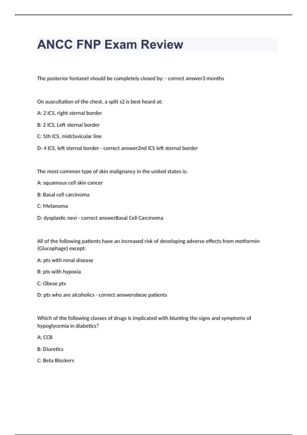 ANCC FNP Exam Review 2023 with 100% correct answers