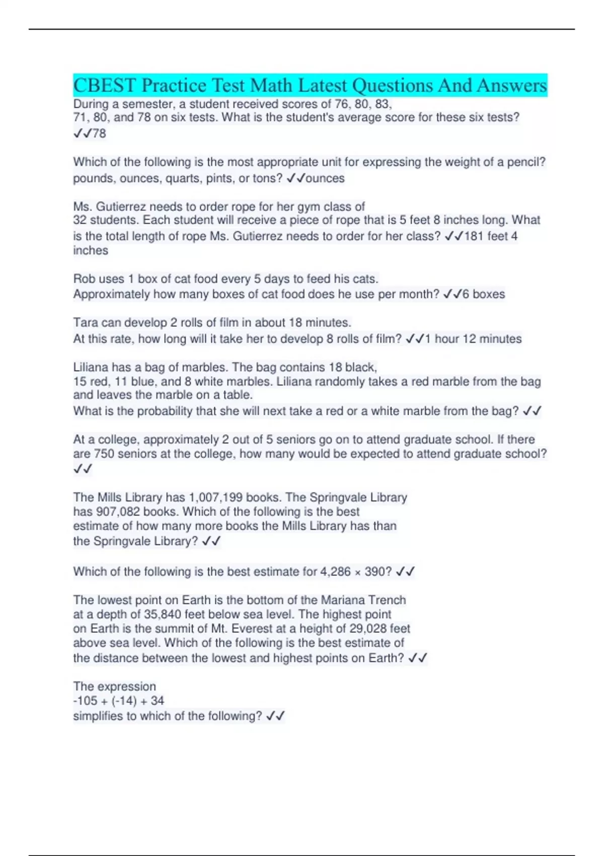 CBEST BUNDLED Practice Exam With 100% Verified Questions and Answers
