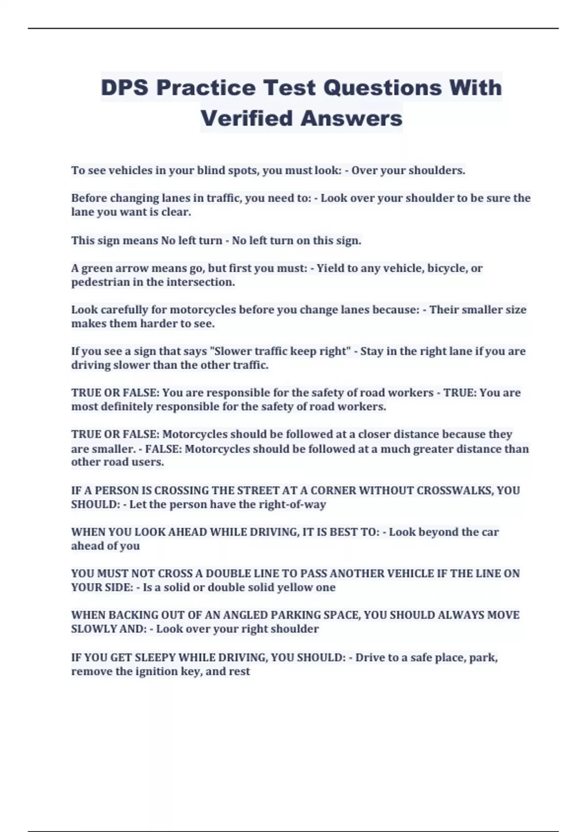 Texas DPS Driving Test Questions With Answers 100% Correct