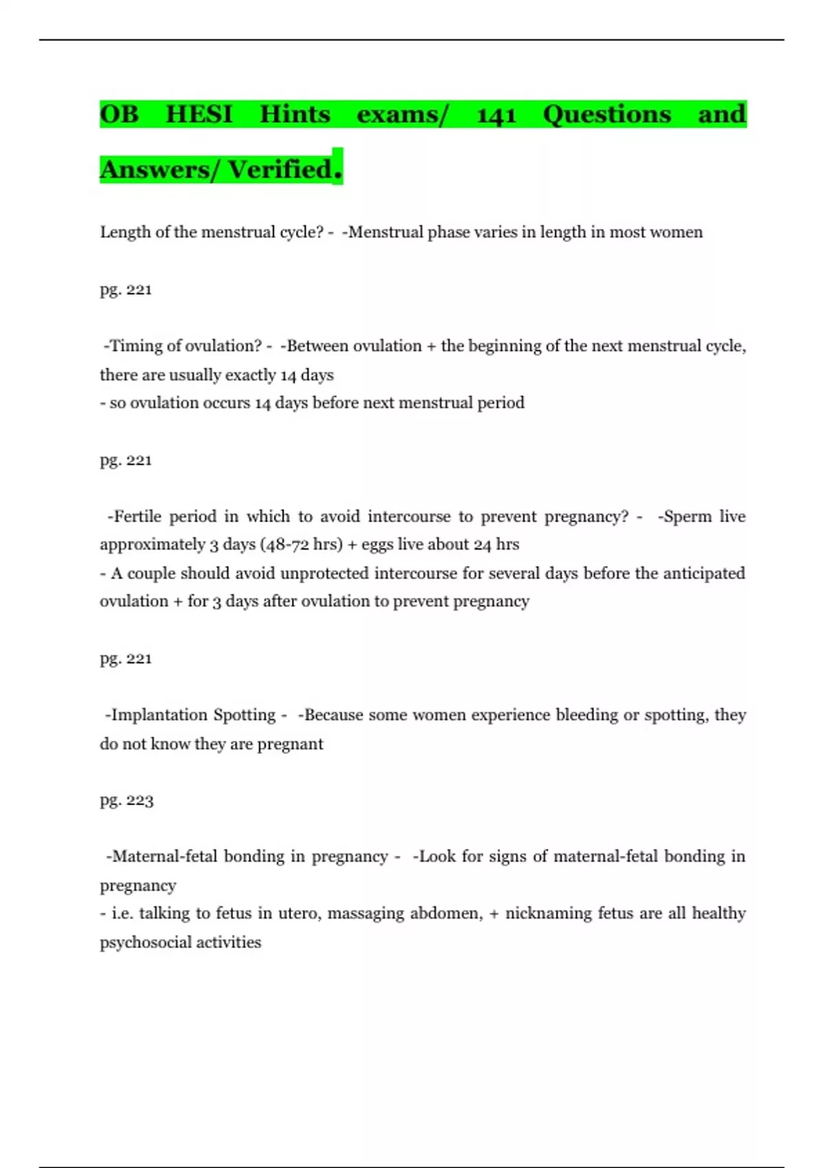 HESI OB Hints exams/ 148 Questions and Answers/ Verified/ Graded A+