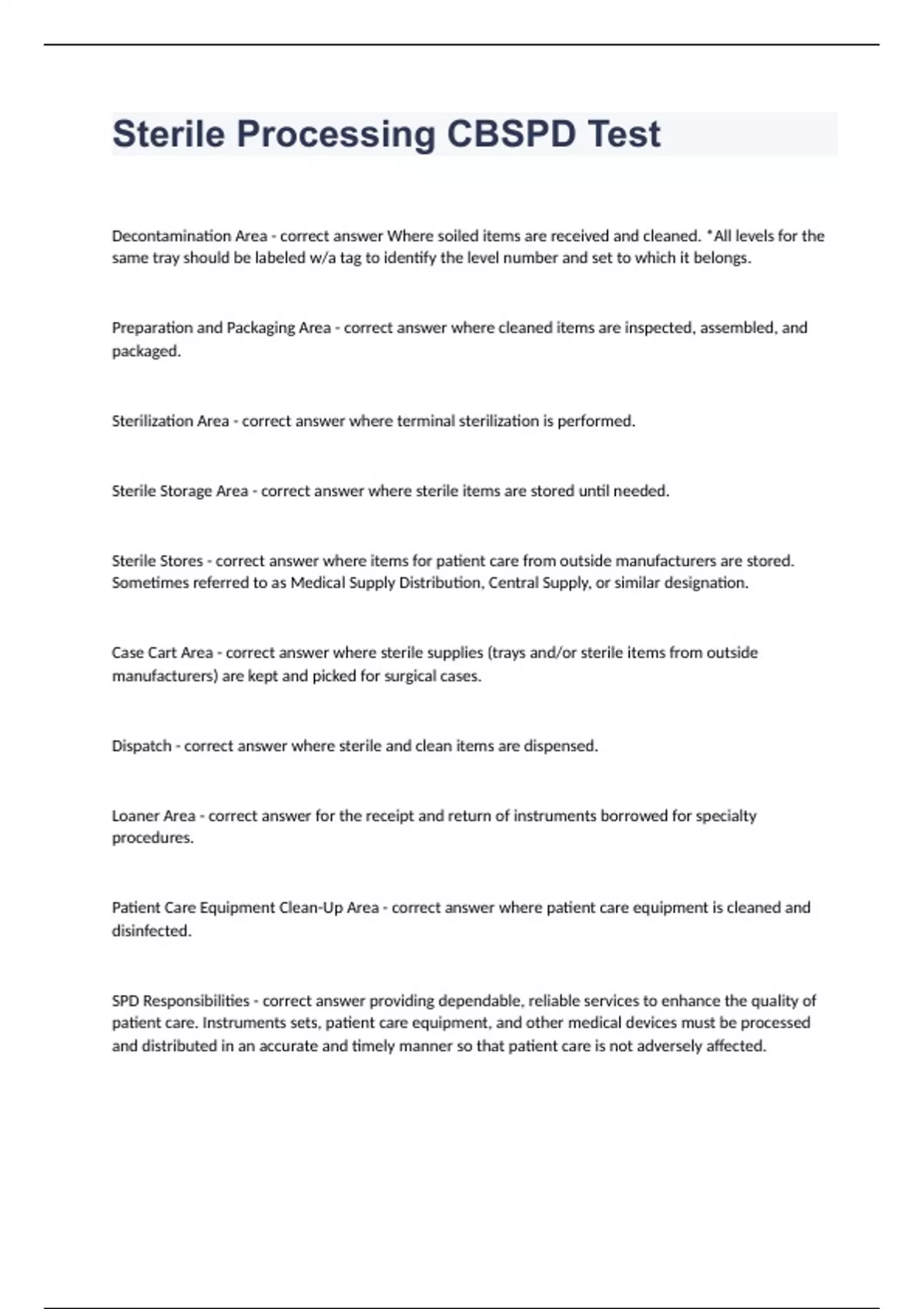 Sterile Processing CBSPD Test question n answers graded A+ 2023