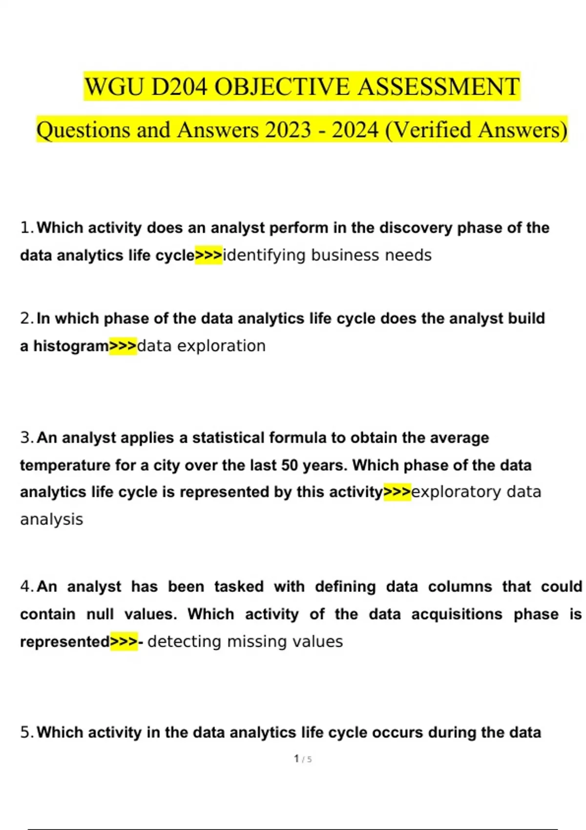 WGU D204 The Data Analytics Journey Study Guide questions and answers} latest % correct answers