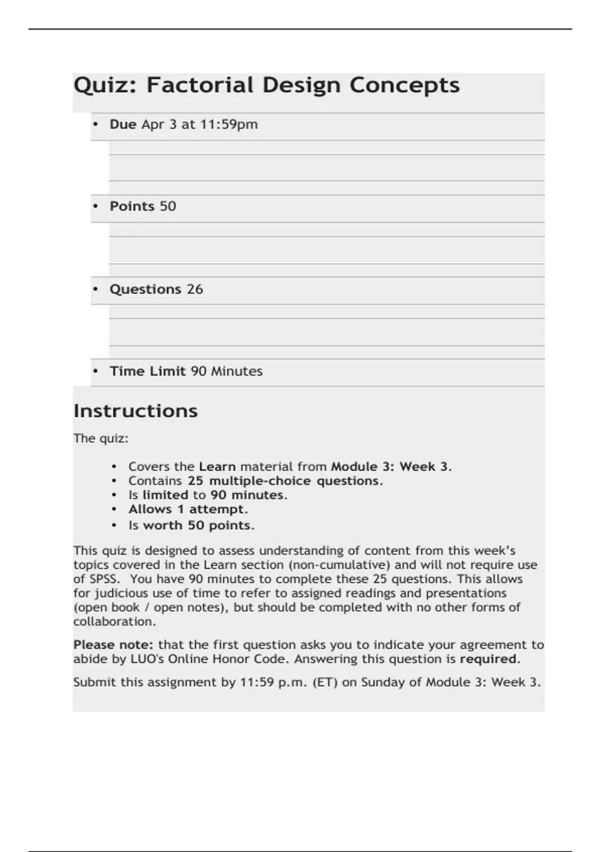 Package Deal For Liberty University- PSYC 515 Research and Statistics II: All Weekly Module Quizzes Already Attempted and Graded/ Revised Fall 23/24