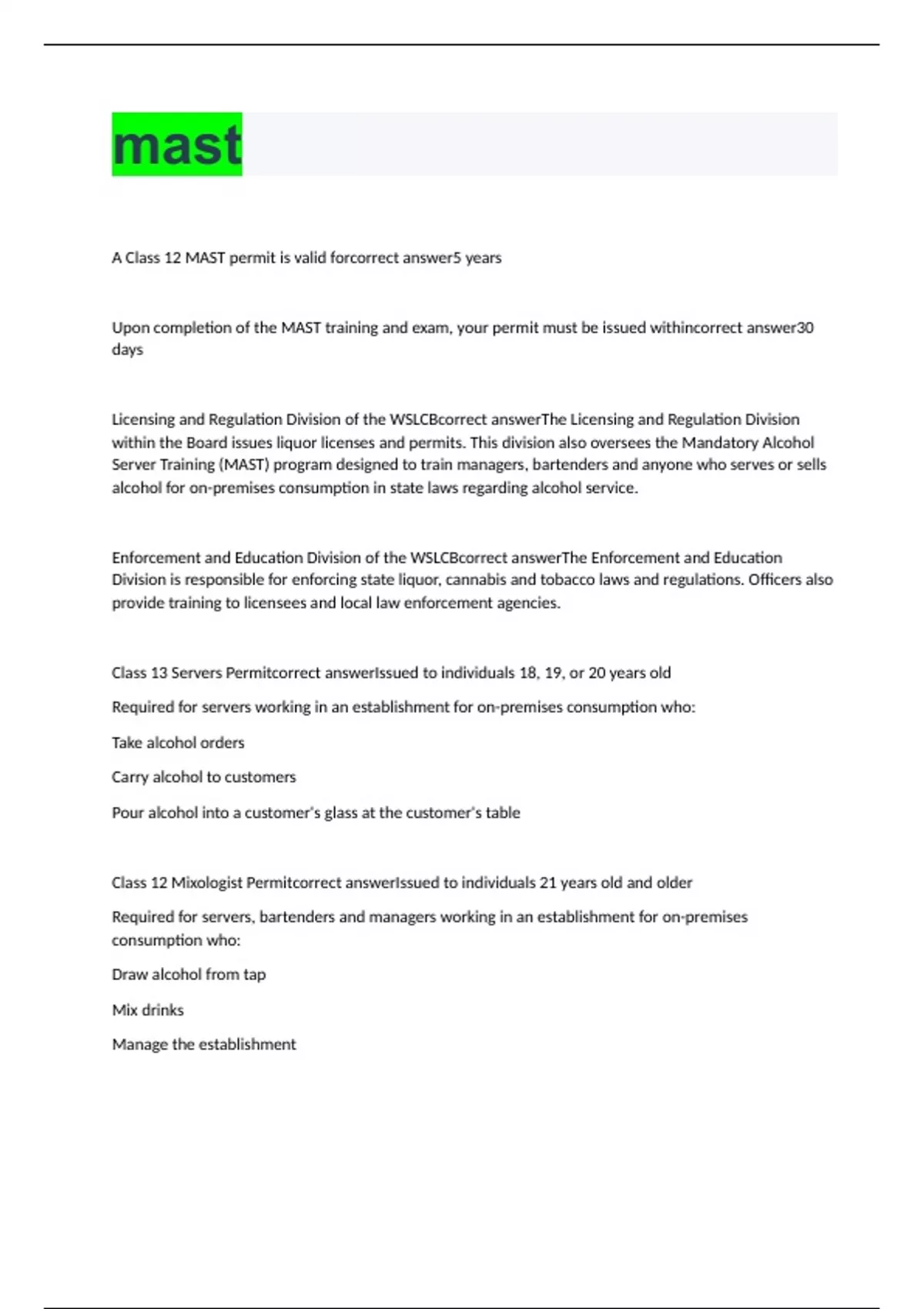 mast bundled exams with correct answers
