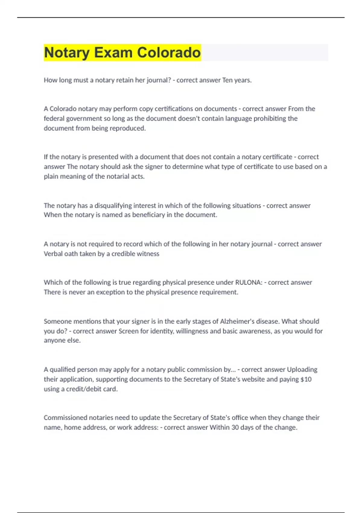 Notary Exam Colorado 2023/24 update