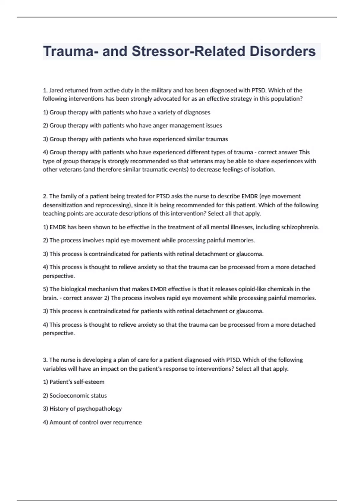 Trauma- and Stressor-Related Disorders question n answers 2023