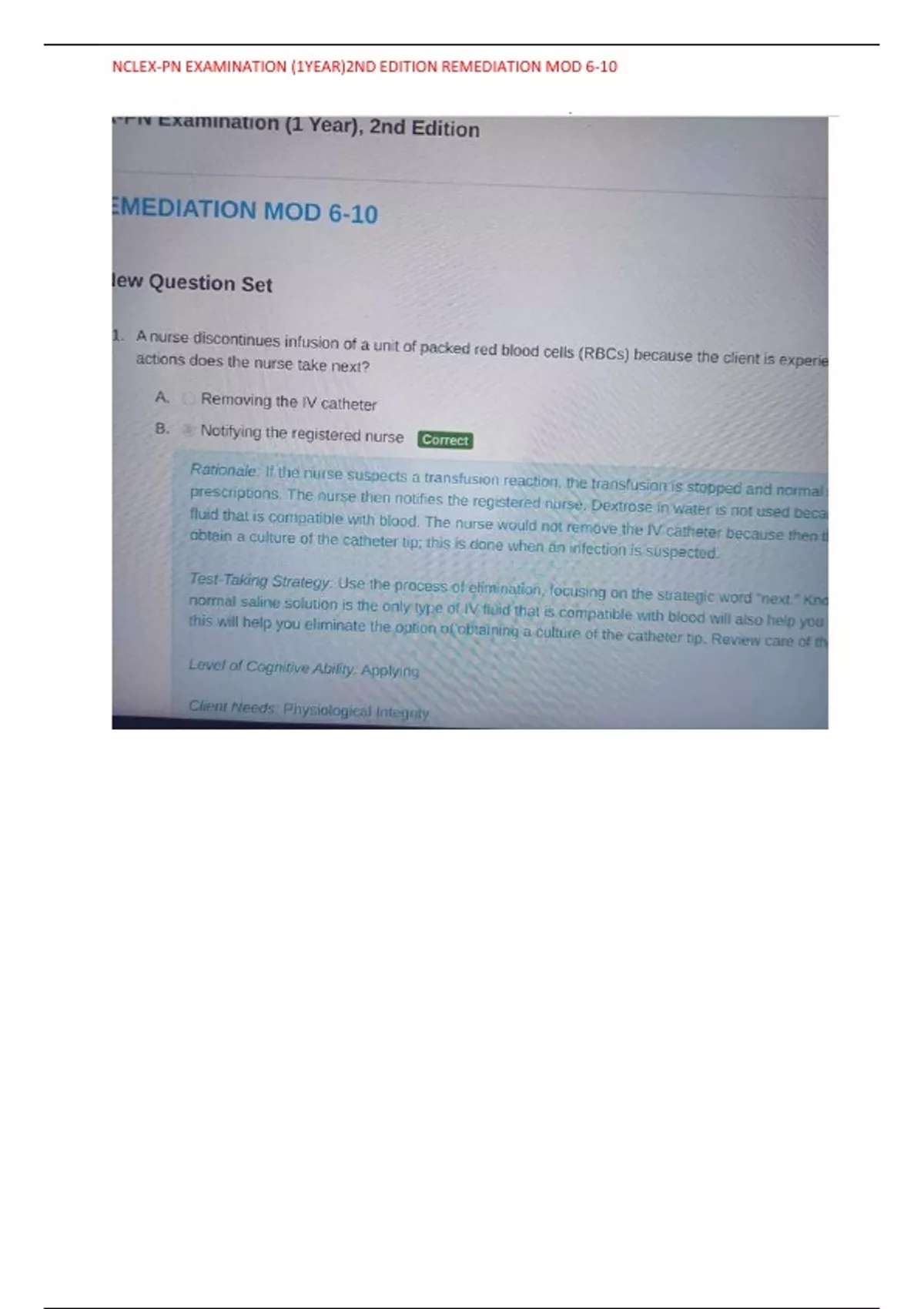 NCLEX-PN EXAMINATION (1YEAR)2ND EDITION REMEDIATION MOD 6-10