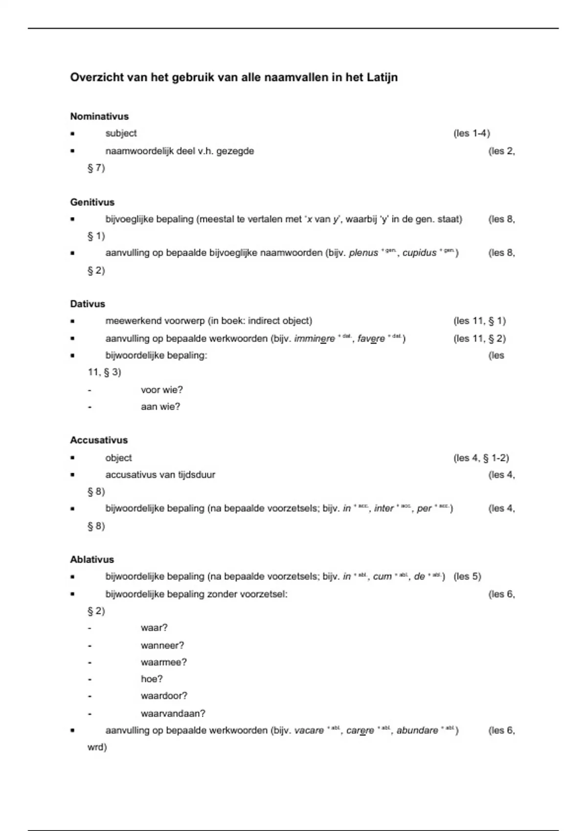 Latijnse naamvallen samenvatting