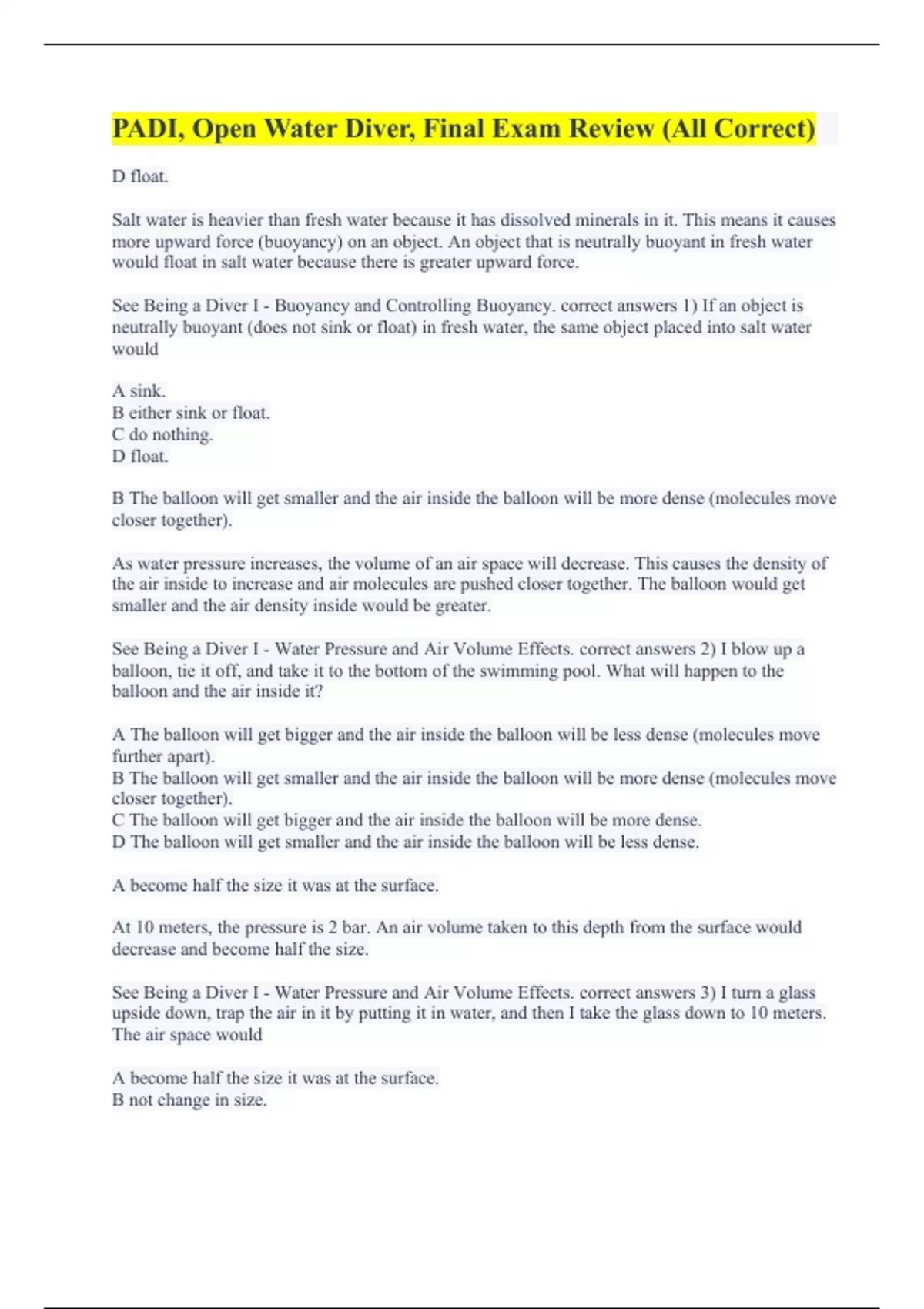 PADI Open Water Diver Course - Section 1 (A+ Graded) PADI, Open Water Diver, Final Exam Review (All Correct) PADI Open Water Diver Certification (All Solutions Verified) PADI Open Water (100% Correct Answers) PADI Open Water Diver Final Exam (100% Accurate Answers) PADI Open Water - Being a Diver I (A+ Guaranteed) PADI open water diver course (with