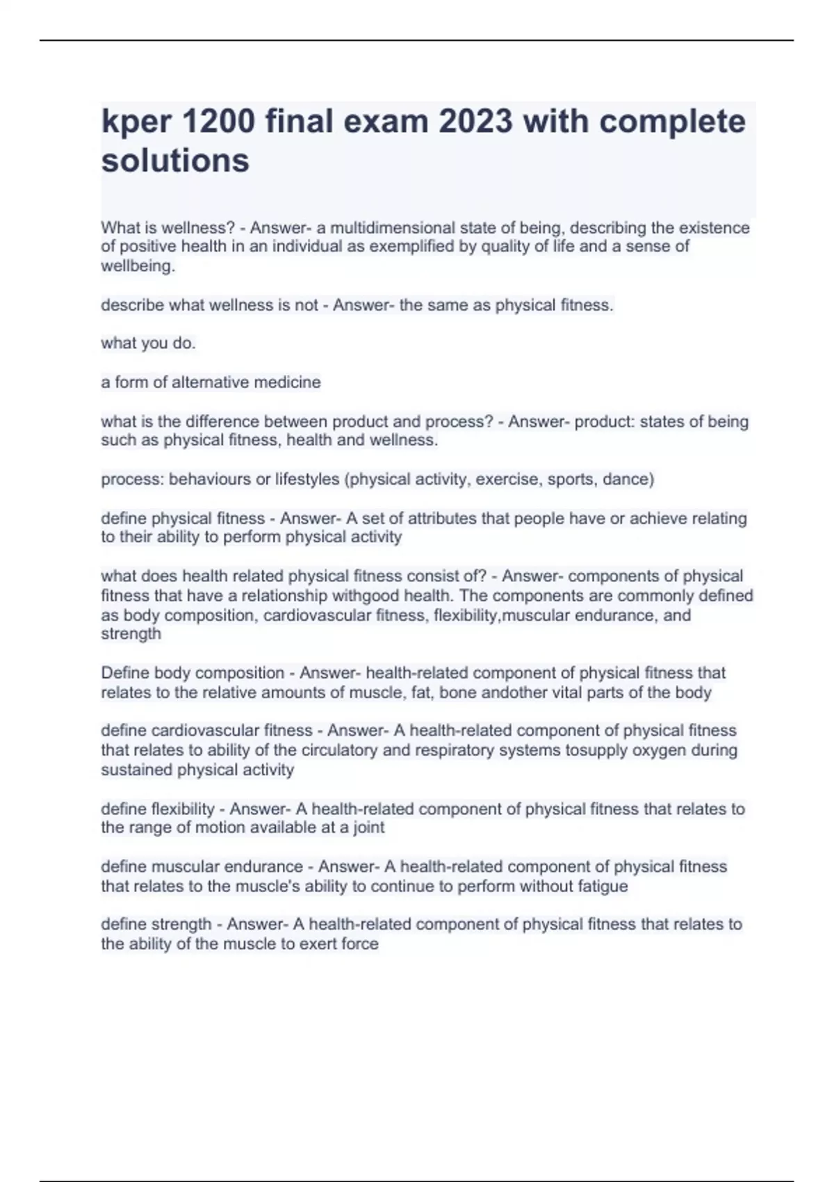 KPER 1200- Final Exam Questions and Answers 2023