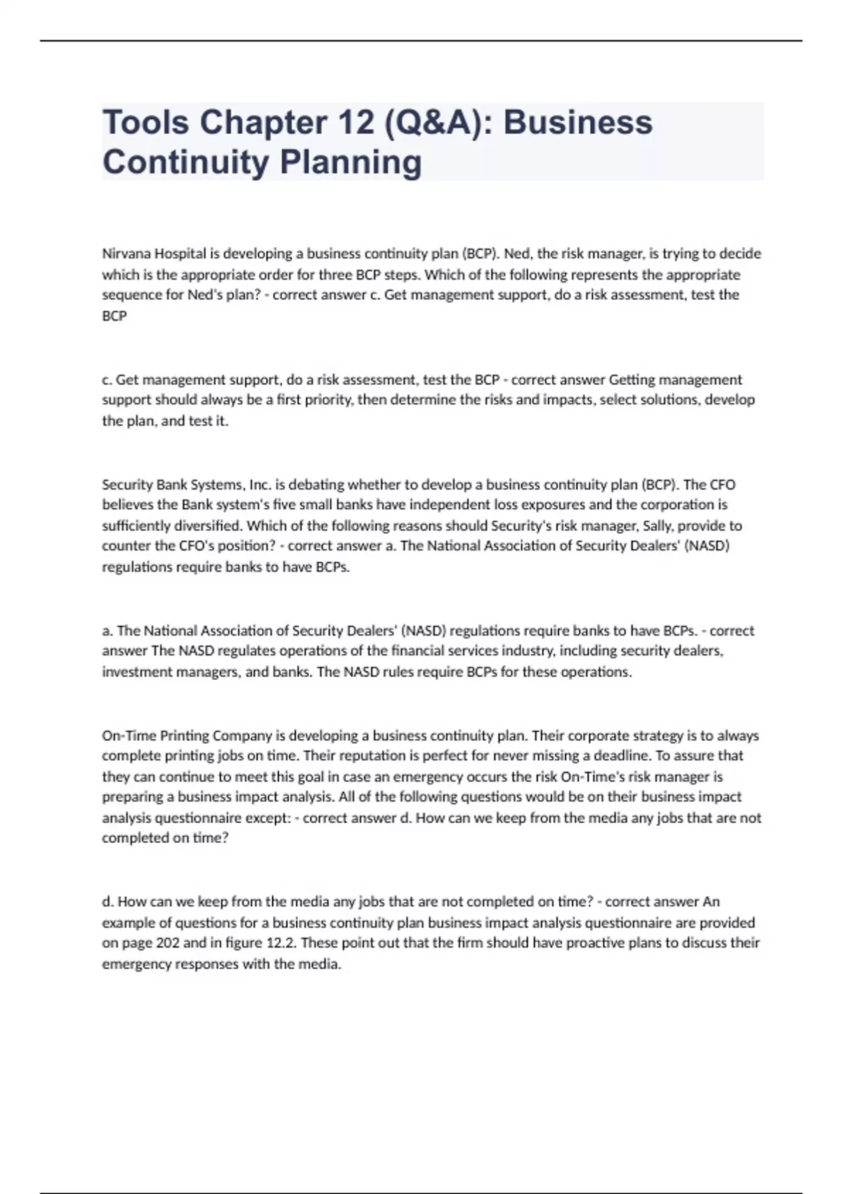 Tools Chapter 12 (Q&A)Business Continuity Planning question n answers rated A+ 2023
