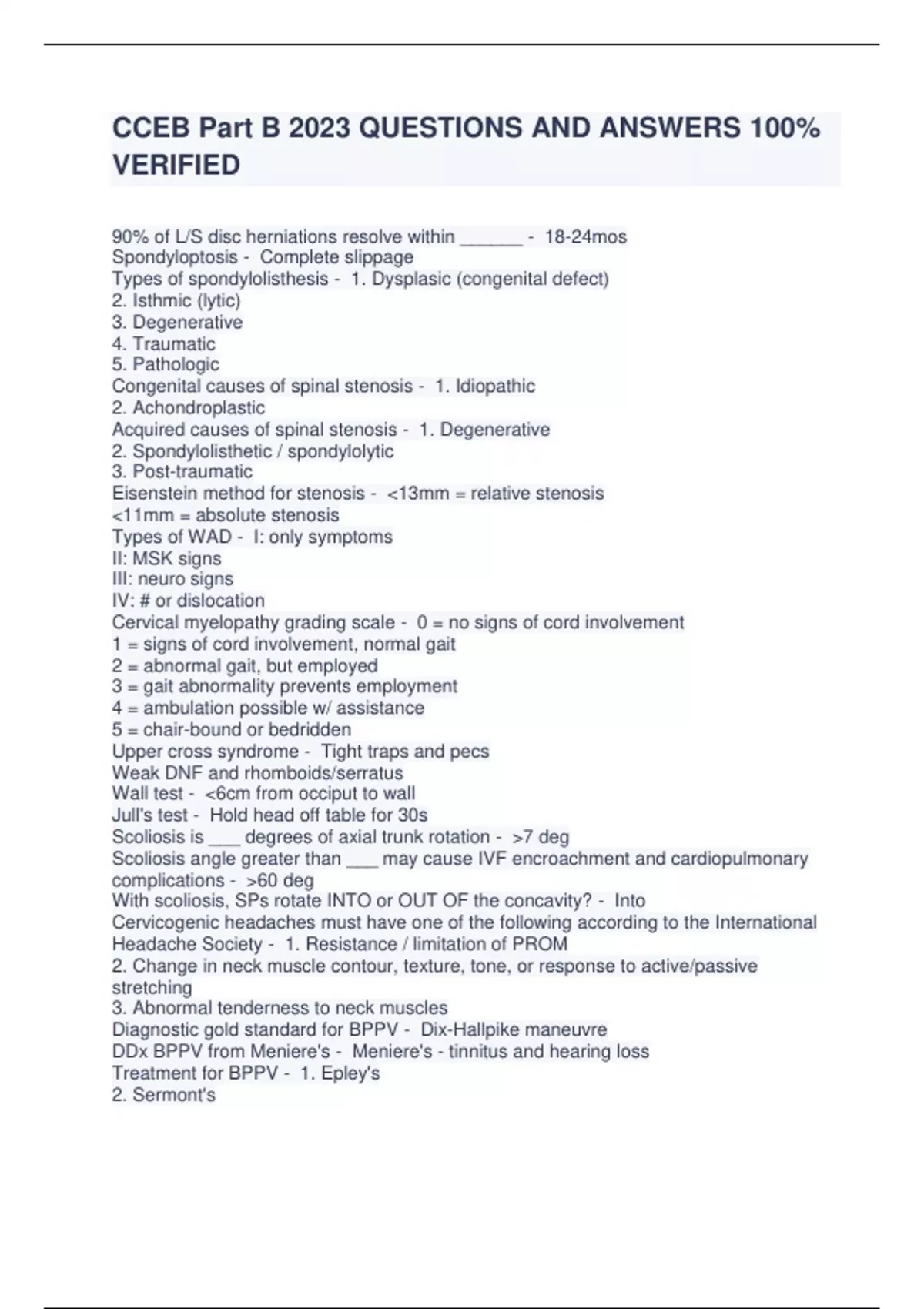 CCBE. BBE Program W.U. Vienna 2023 WITH COMPLETE SOLUTION,CCEB Part A 2023 questions and answer,CCEB Exam prep A of the Canadian chiropratic board 2023 With complete solution,CCEB Part B 2023 QUESTIONS AND ANSWERS 100% VERIFIED