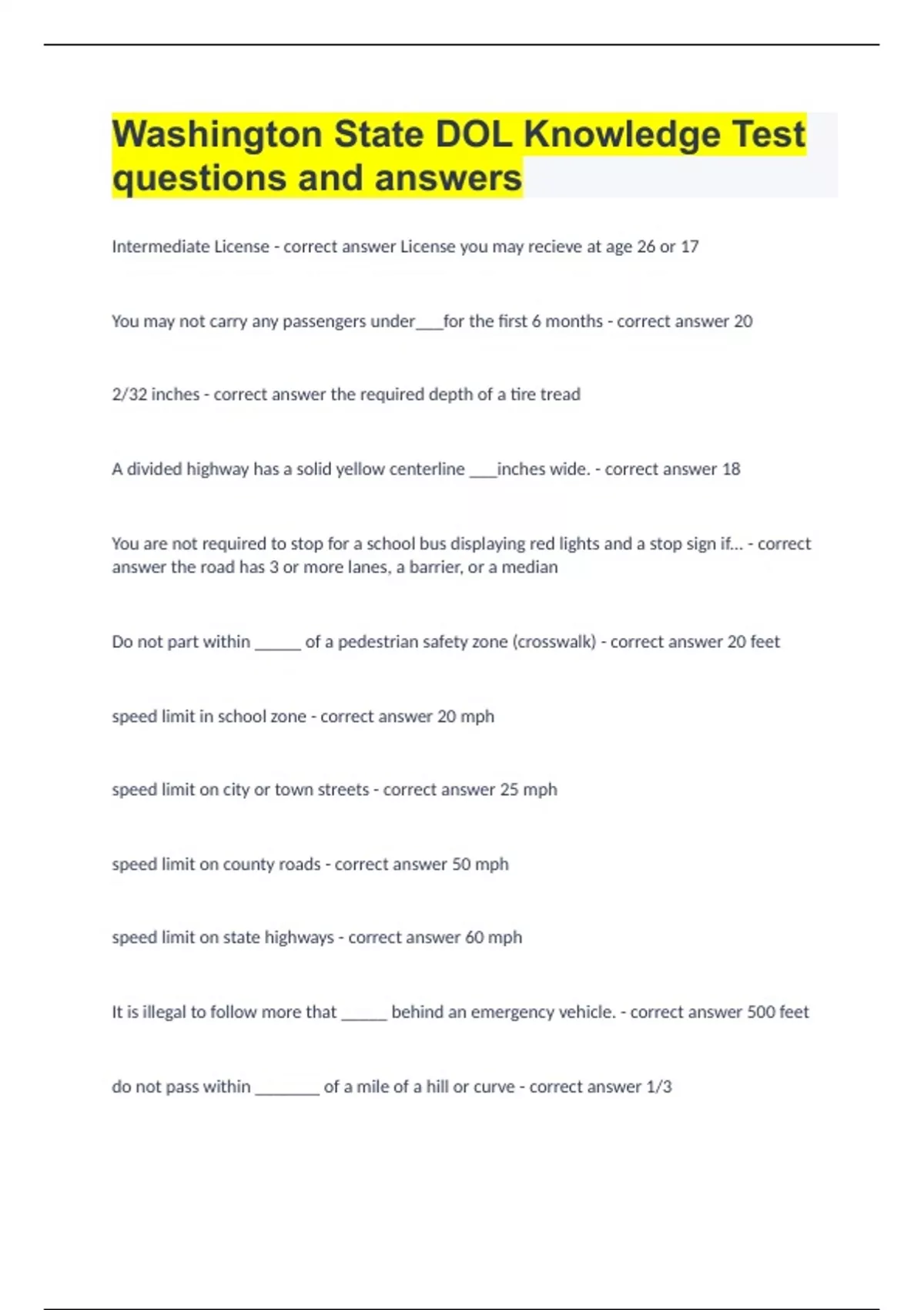 BUNDLE::::::WASHINGTON STATE DRIVING KNOWLEDGE EXAMS