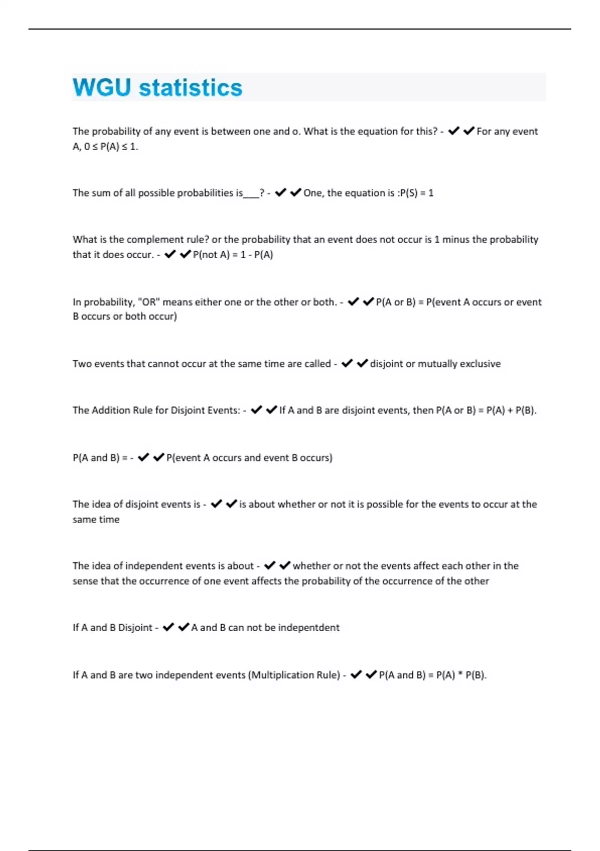 WGU Intro to Probability and Statistics | 107 Questions and Answers(A+ Solution guide)