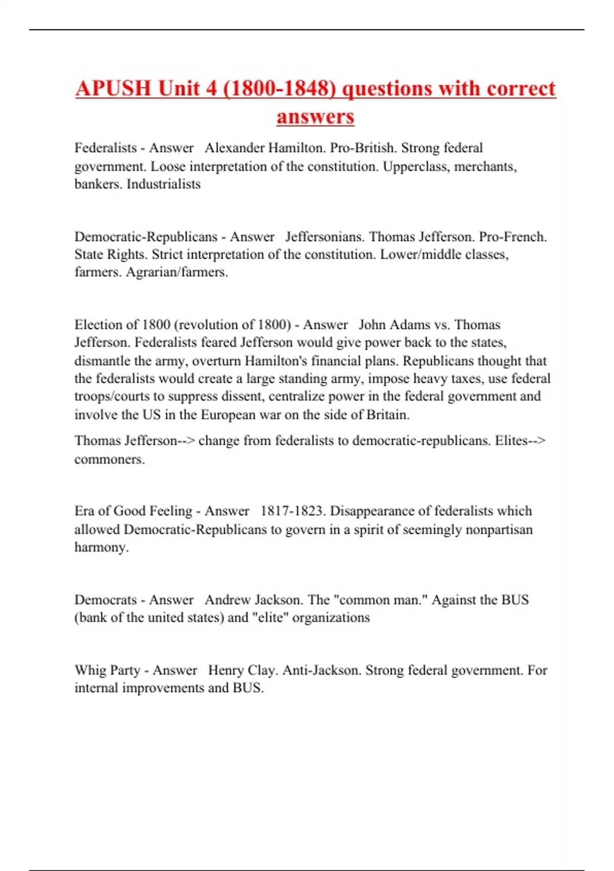 Entire APUSH Review Packet with correct answers