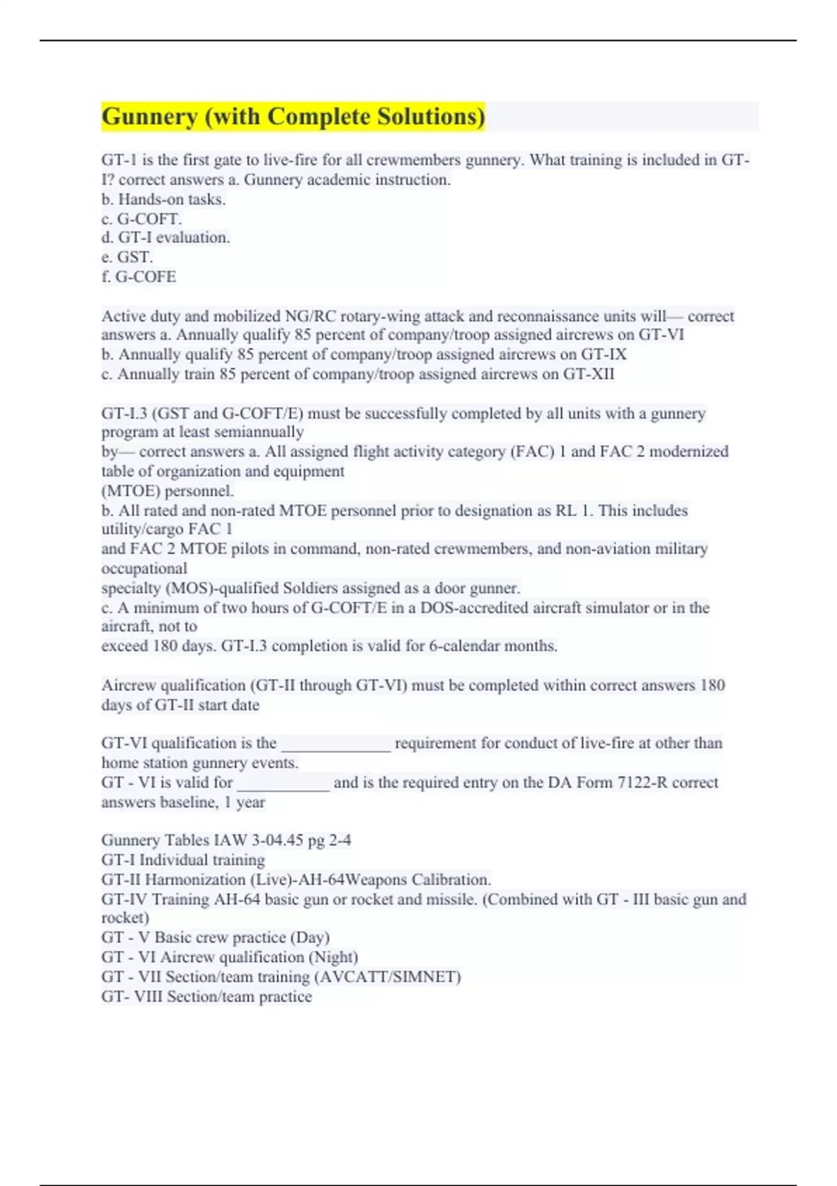 Phase 1 Air Assault (with Complete Solutions) Master Gunner Vehicle Identification (vehicle first) 100% Correct. USMC - Machine Gunnery (A+ Graded Already) Gunnery table iv (with Complete Solutions) Gunnery Skills Test (Possible Questions with Accurate Answers) Crew Gunnery/ Evaluation (All Solved) Gunry (100% Correct Answers) Gunnery (with Complet