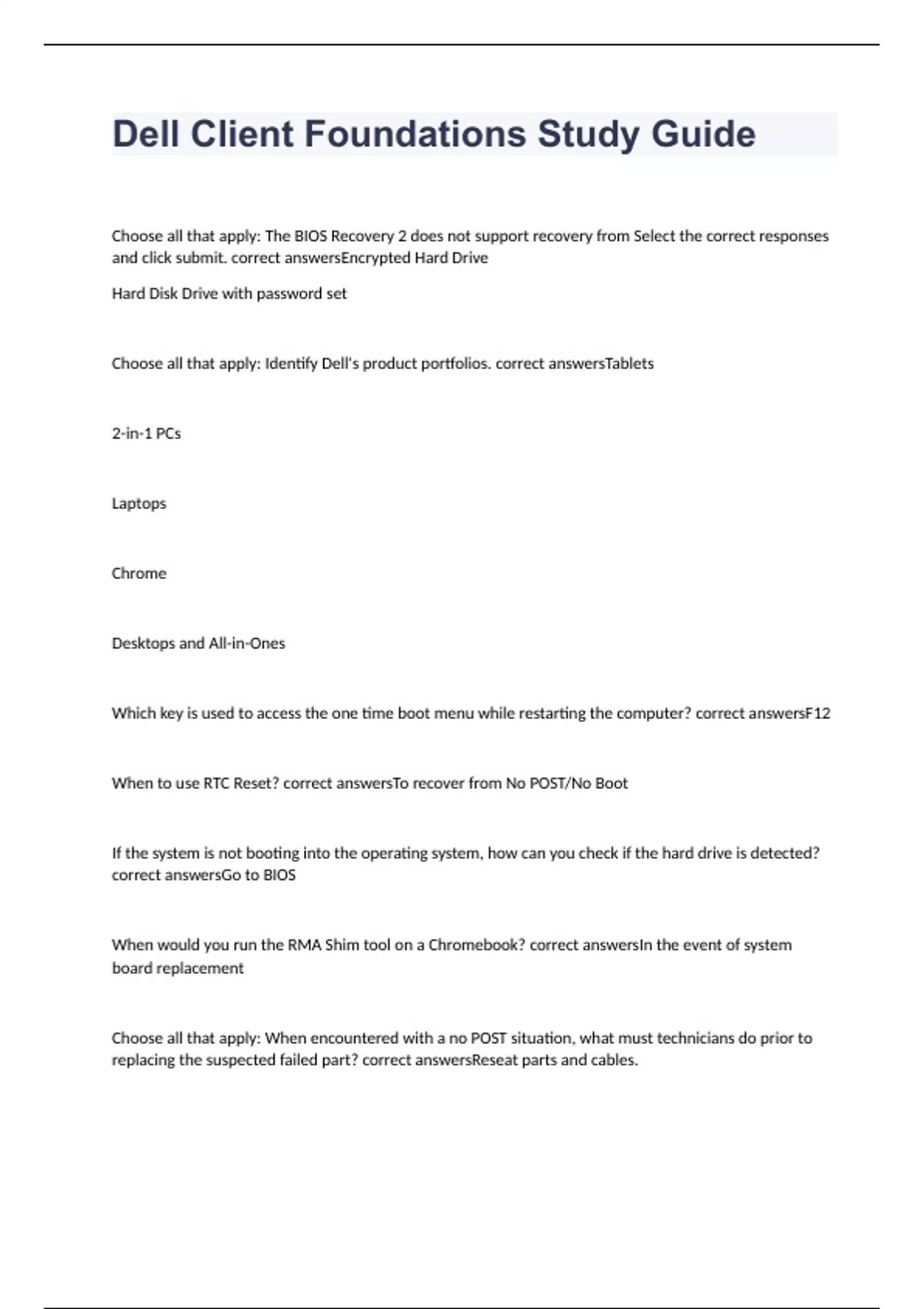 Study Guide - Dell Client Advanced with correct solutions