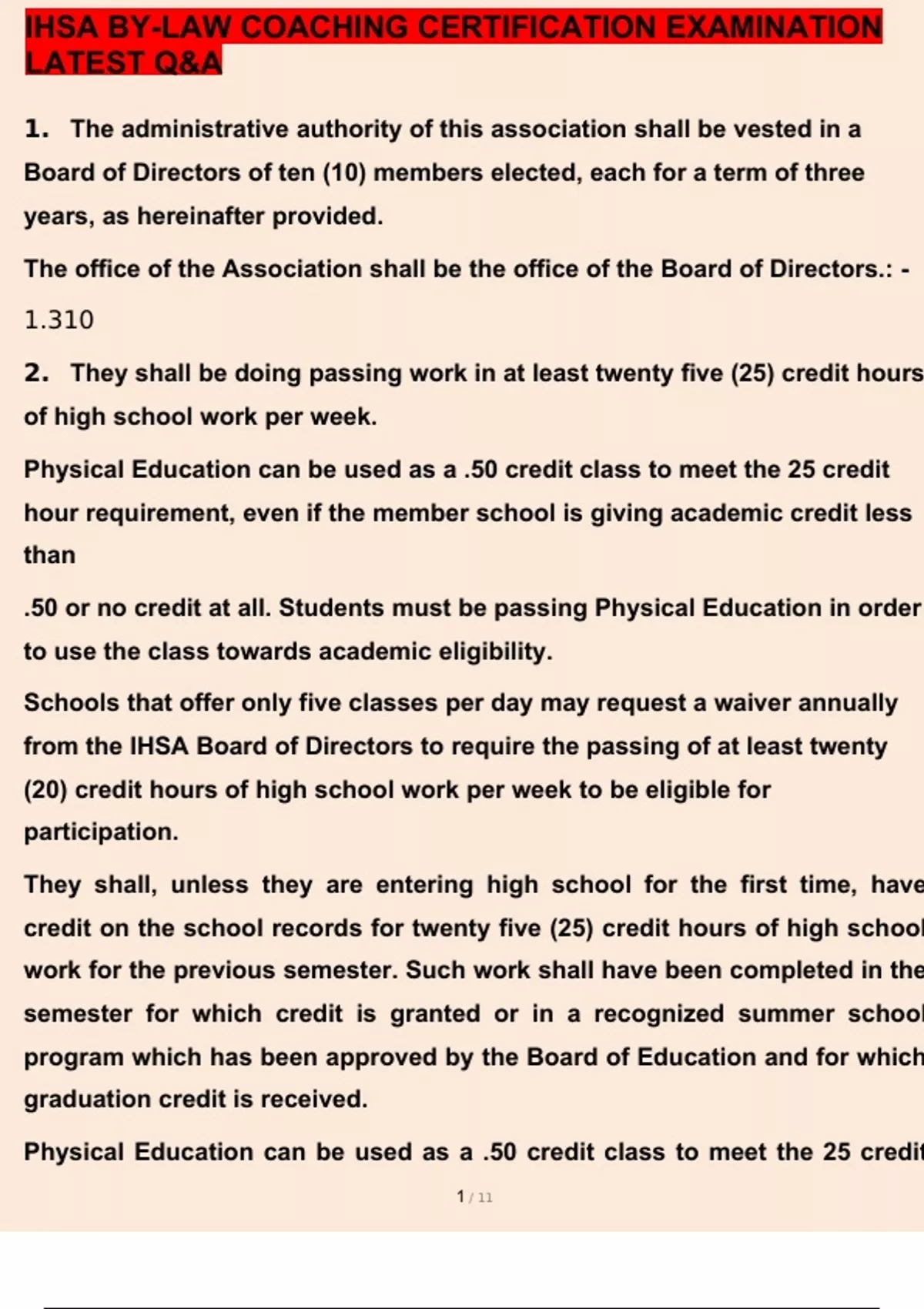 IHSA BY-LAW COACHING CERTIFICATION EXAMINATION 2023/2024 QUESTIONS AND ANSWERS GRADED A+