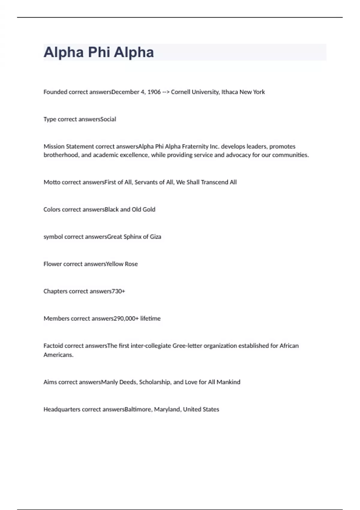 Alpha Phi Alpha exam 2023 with 100% correct answers Alpha Phi Alpha - Final Study Cards exam 2023 with 100% correct answers