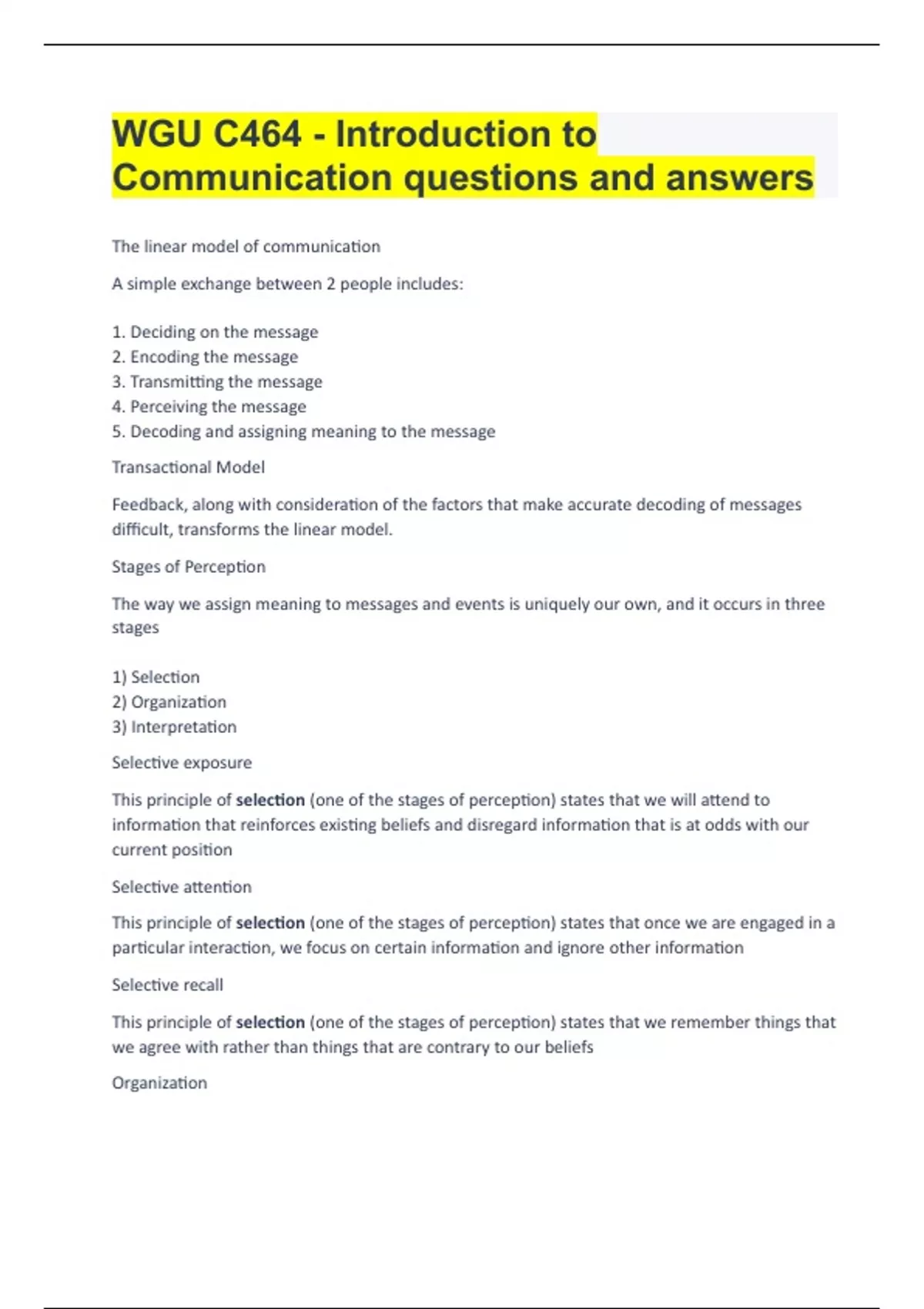 BUNDLE:::::::::::WGU C464:INTRODUCTION TO COMMUNICATION EXAMS|GUARANTEED SUCCESS