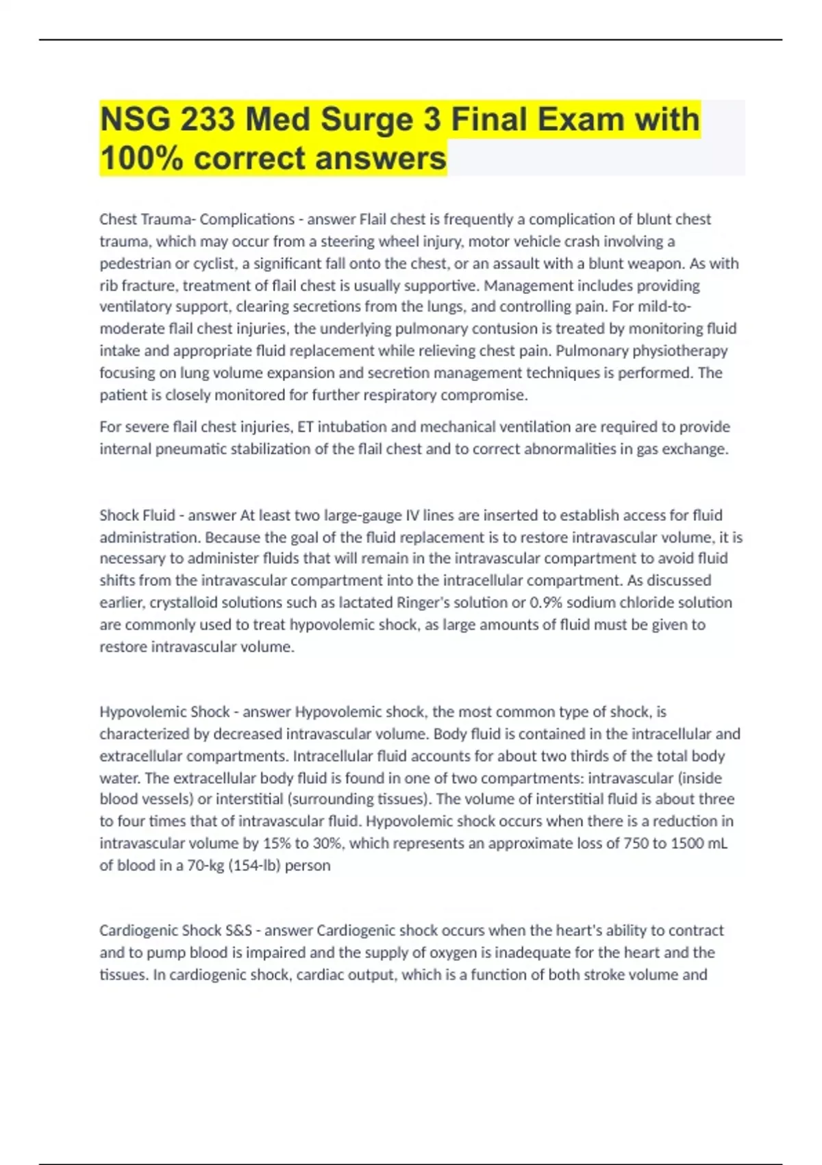 NSG 233 MEDSURG BUNDLED EXAMS WITH 100% CORRECT ANSWERS|GUARANTEED SUCCESS