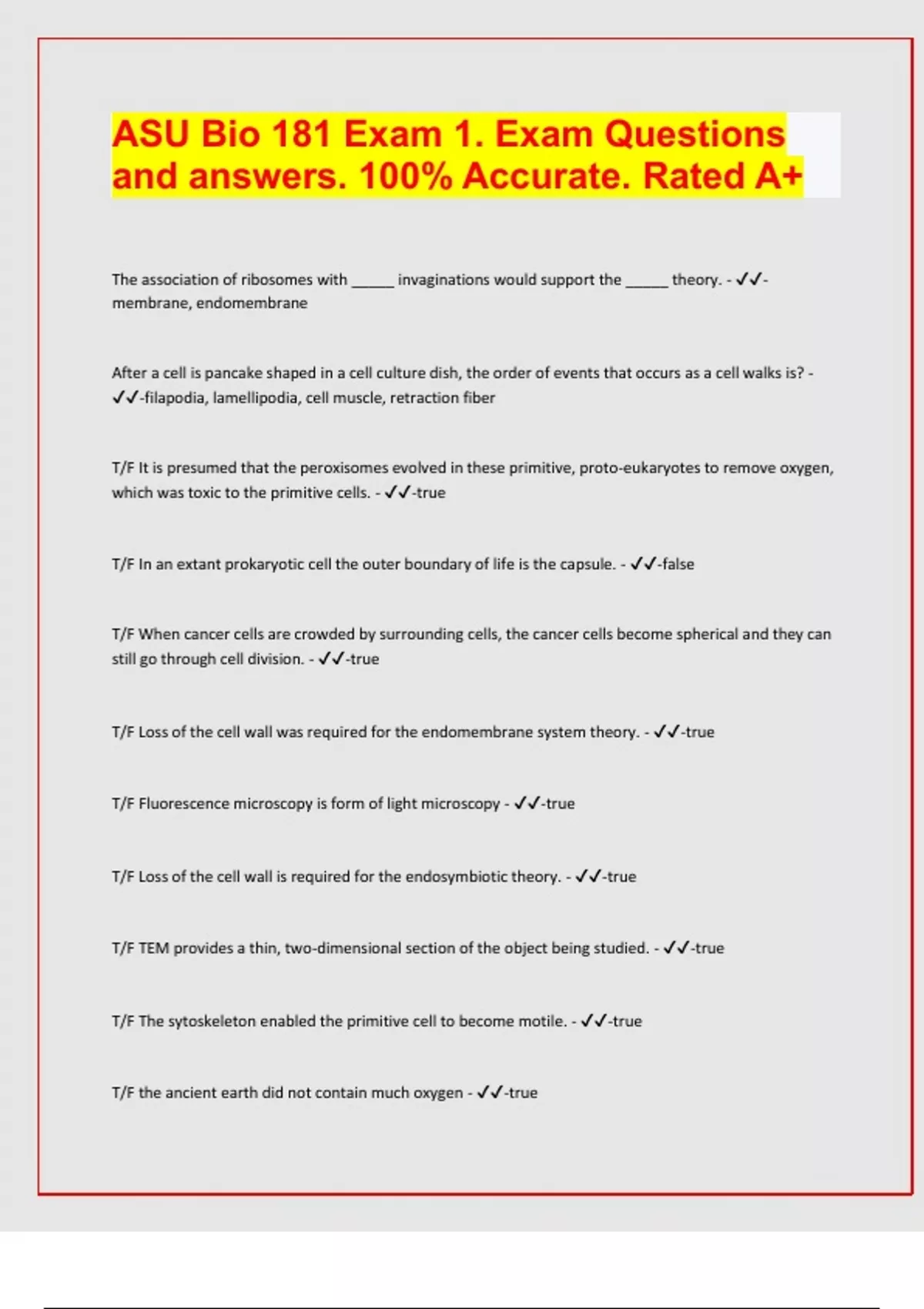 ASU Bio 181 Exam 1. Exam Questions and answers. 100% Accurate. Rated A+