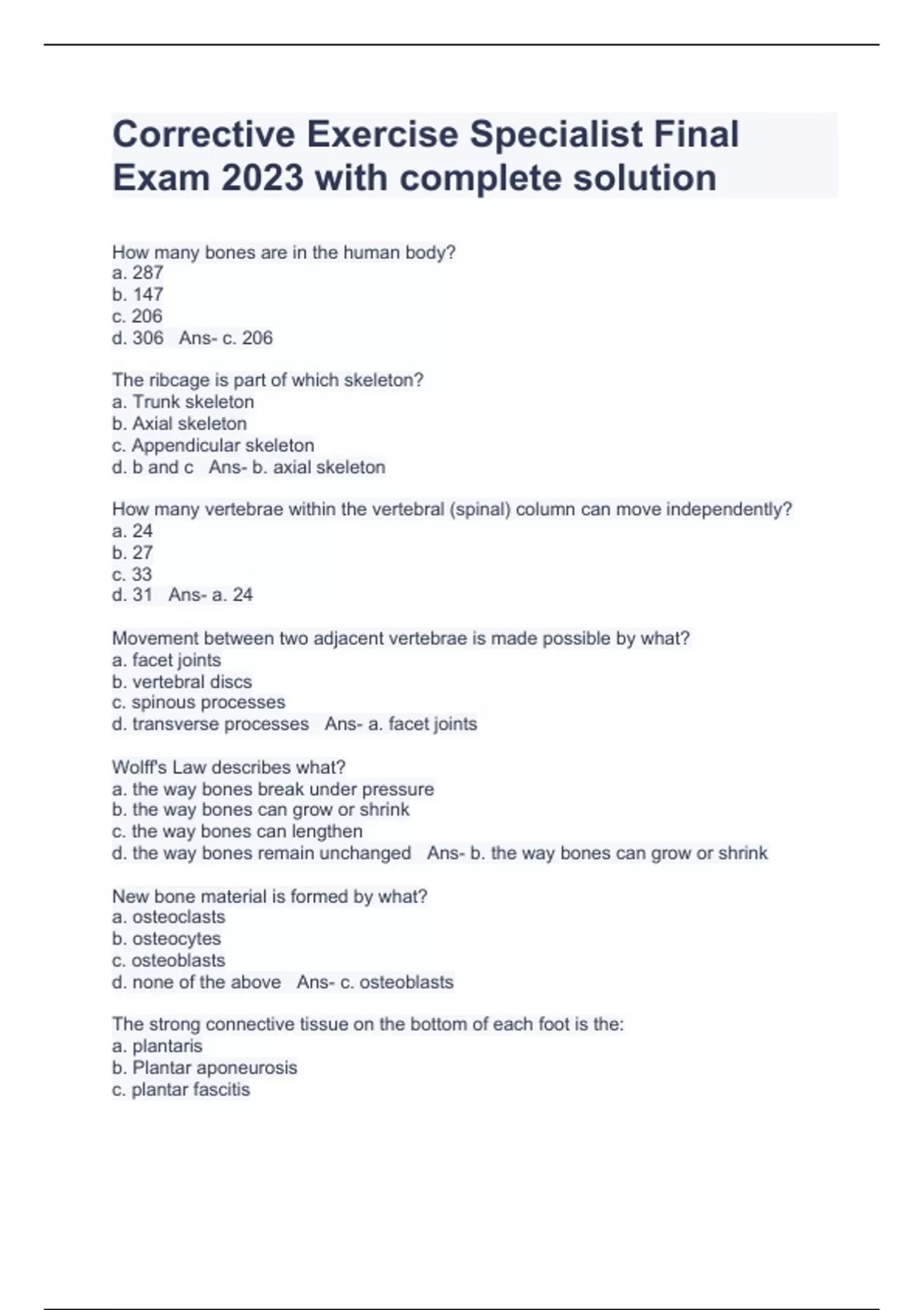 Corrective Exercise Specialist Final Exam 2023 with complete solution NASM Corrective exercise specialist Study Guide Fall 2023 with complete solution NASM Corrective Exercise Specialist Quiz Questions and Answers 2023 with complete solution NASM CES Final Exam (All), NASM CES Final Exam (All 2) Fall 2023 full solution pack