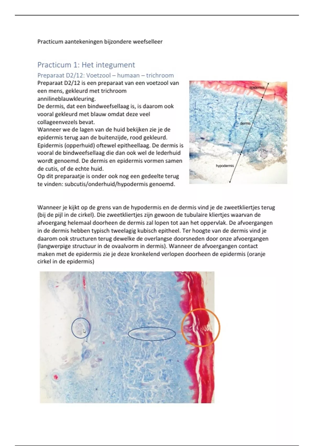 Alle practica van bijzondere weefselleer samengevat. Alle filmpjes uitgetypt en de weefsels, cellen etc. aangeduid. Volledig onderdeel voor het practicumgedeelte.