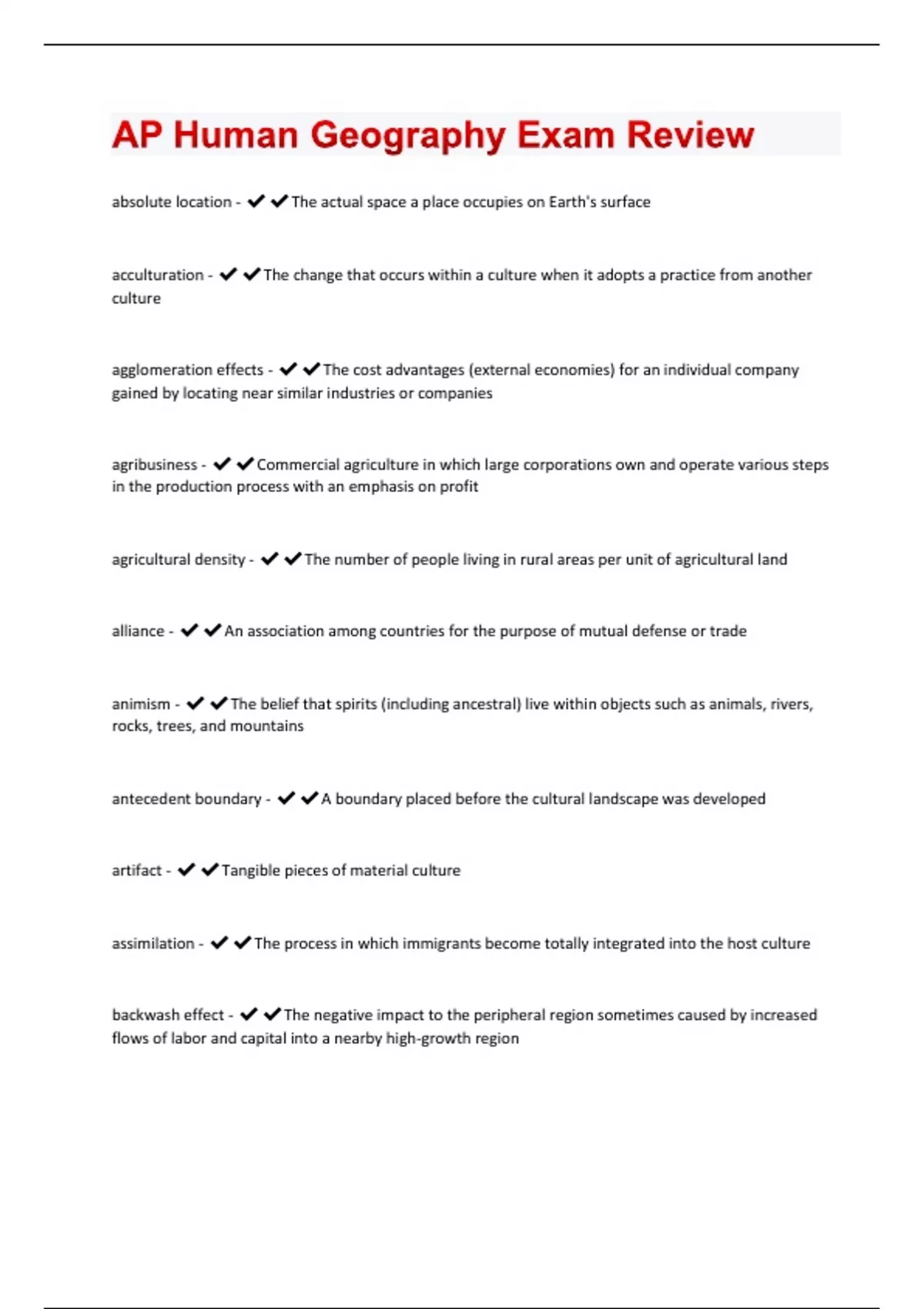 AP Human Geography Exam Review Terms you need to know Rated 100% Correct!!