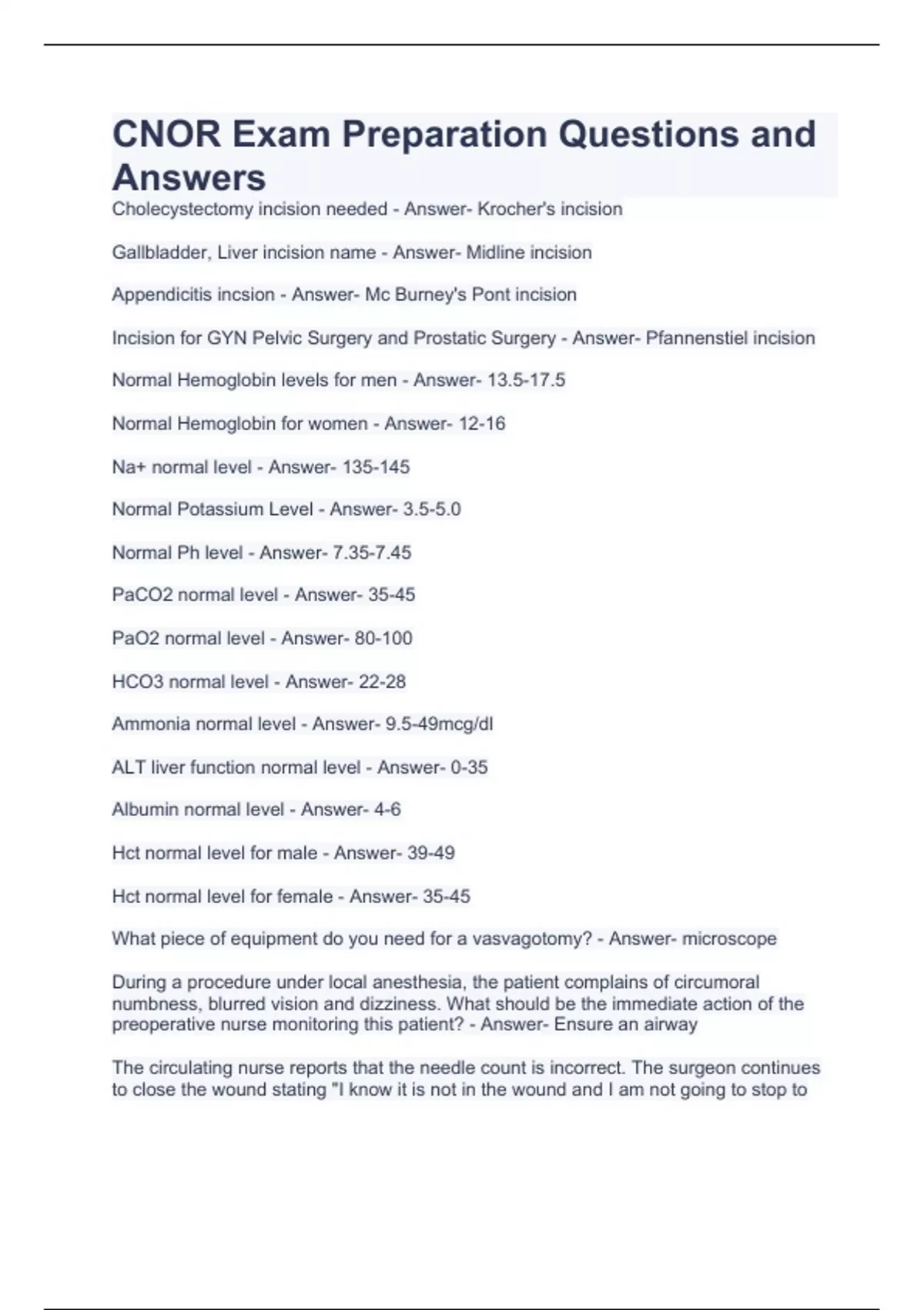 CNOR Exam Preparation Questions and Answers CNOR Practice Exam Prep by CCI Questions with 100% correct Answers 100 Question CNOR Practice Exam with correct Answers CNOR practice quiz with complete solutions CNOR Exam 2023 Questions and Answers CNOR Questions with 100% correct Answers CNOR EXAM PREP QUESTIONS AND ANSWERS CNOR-PREP EXAM WITH COMPLETE