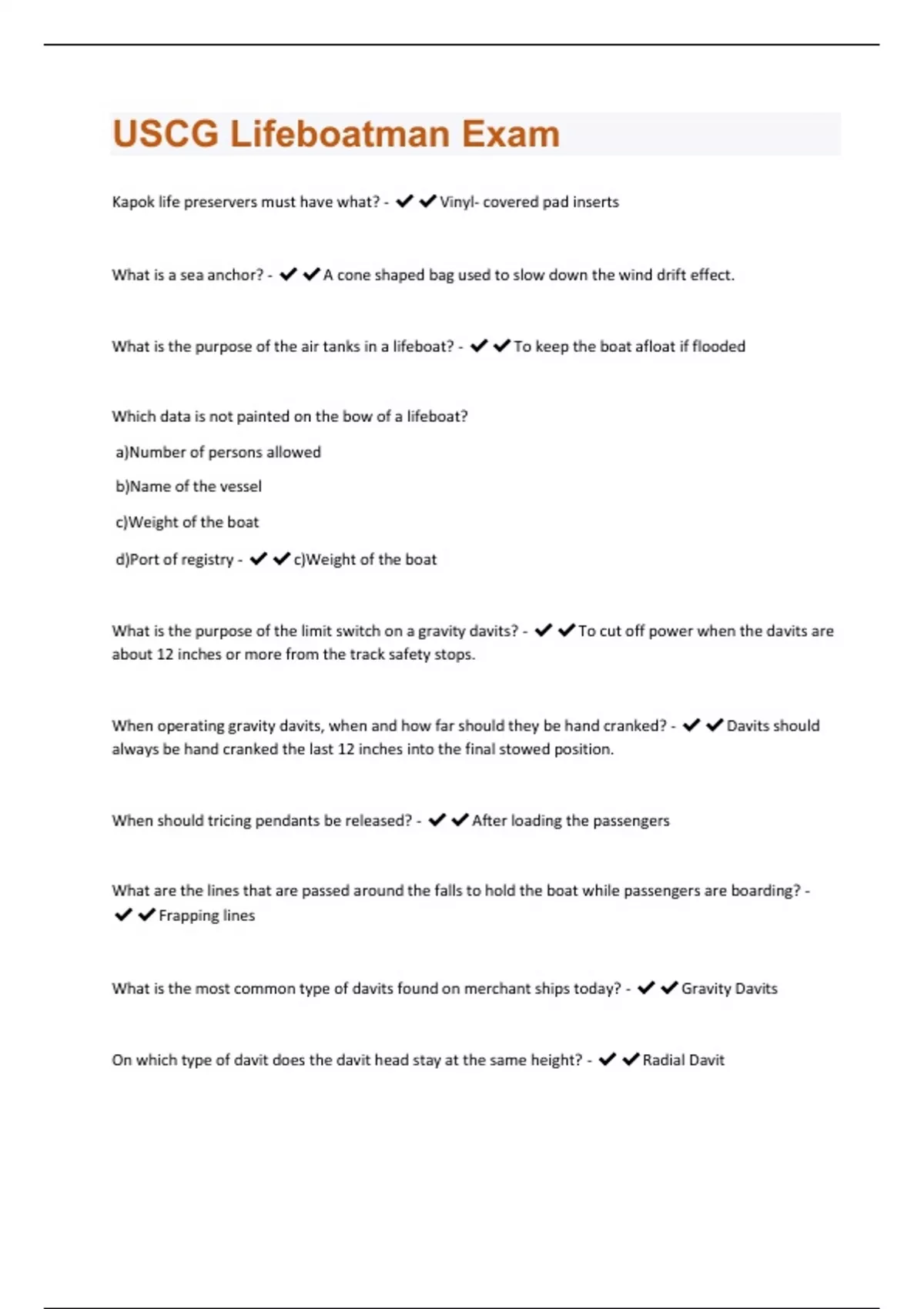 USCG Lifeboatman Exam | 205 Questions and Answers(A+ Solution guide)