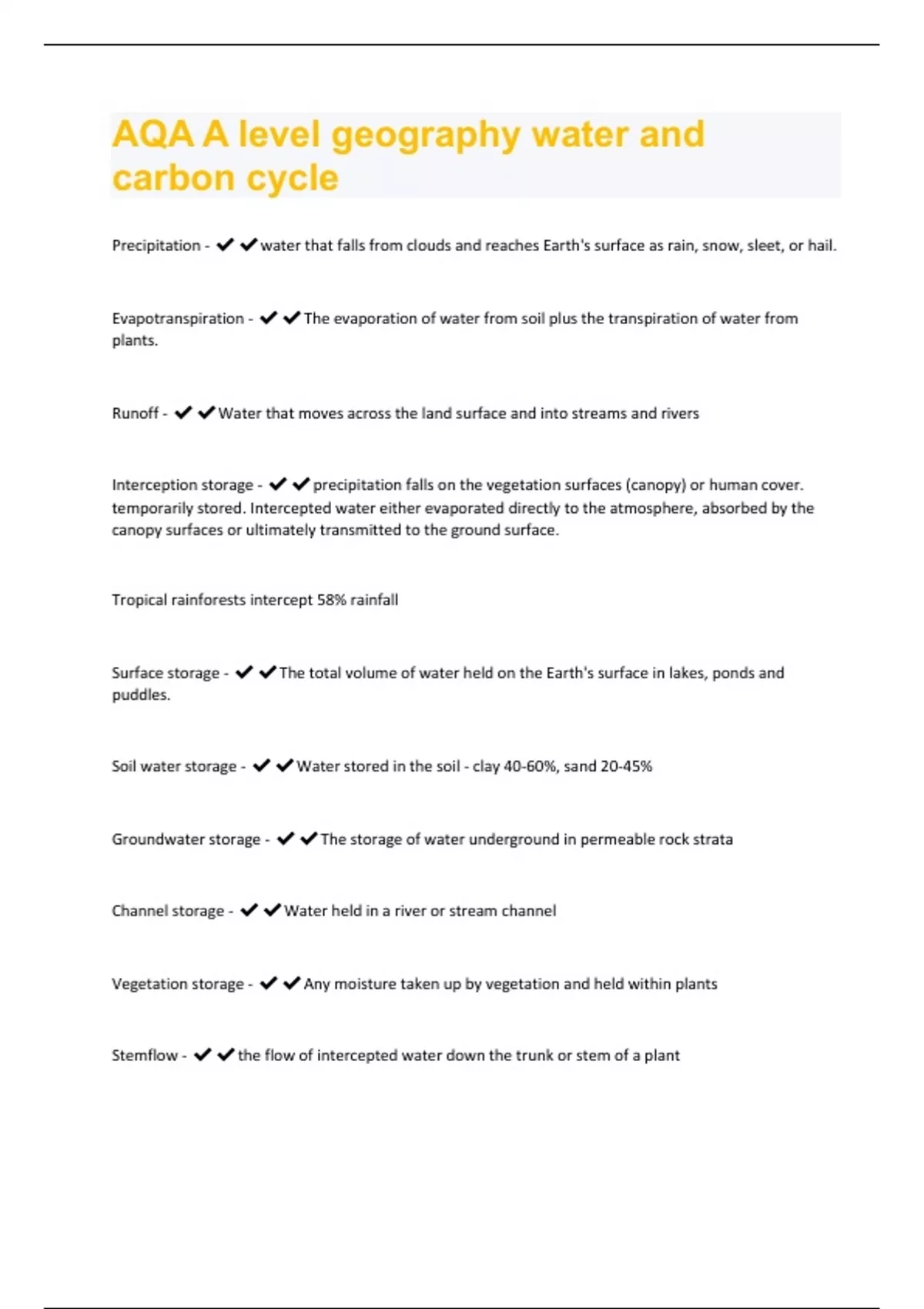 AQA A level geography water and carbon cycle |167 Questions and Answers (Verified Answers)