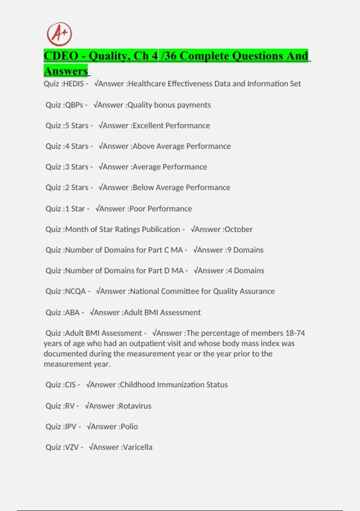 CDEO EXAM Updated Questions With Complete Solutions Graded (A+)