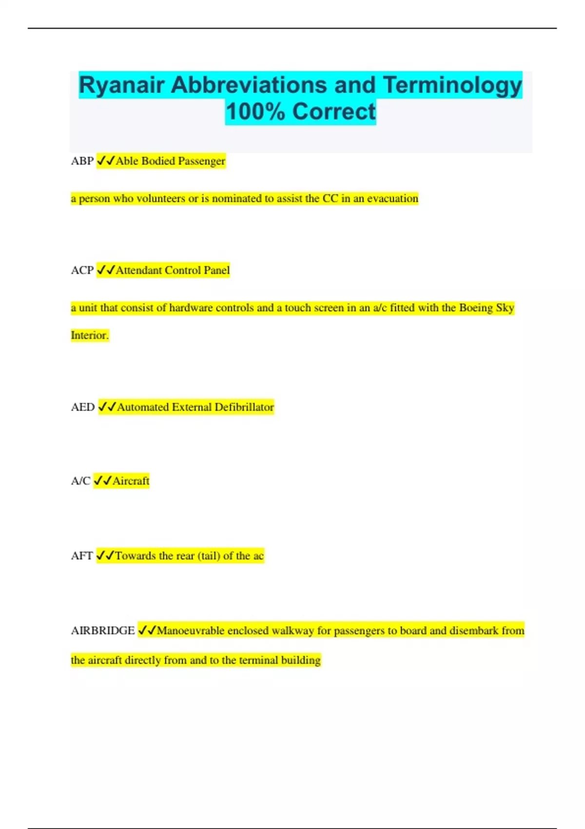 Ryanair Abbreviations and Terminology 100% Correct