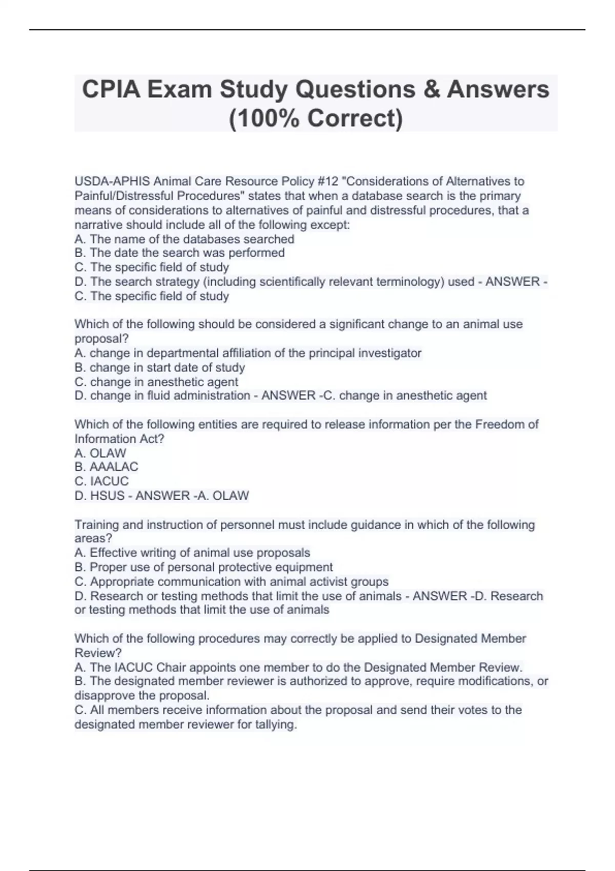 CPIA Exam PACKAGE DEAL| with Questions & Complete Answers (Graded A+)