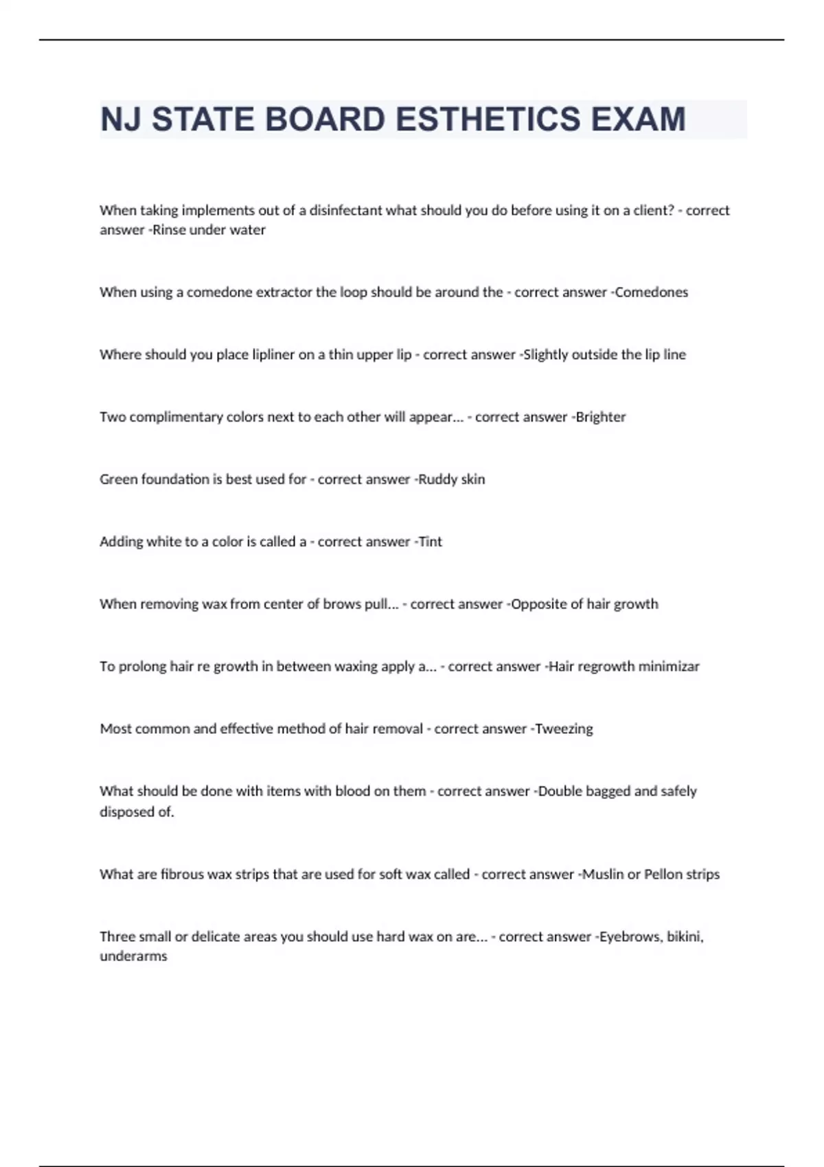 ESTHETICS STATE BOARD EXAM 2023 WITH 100% CORRECT ANSWERS